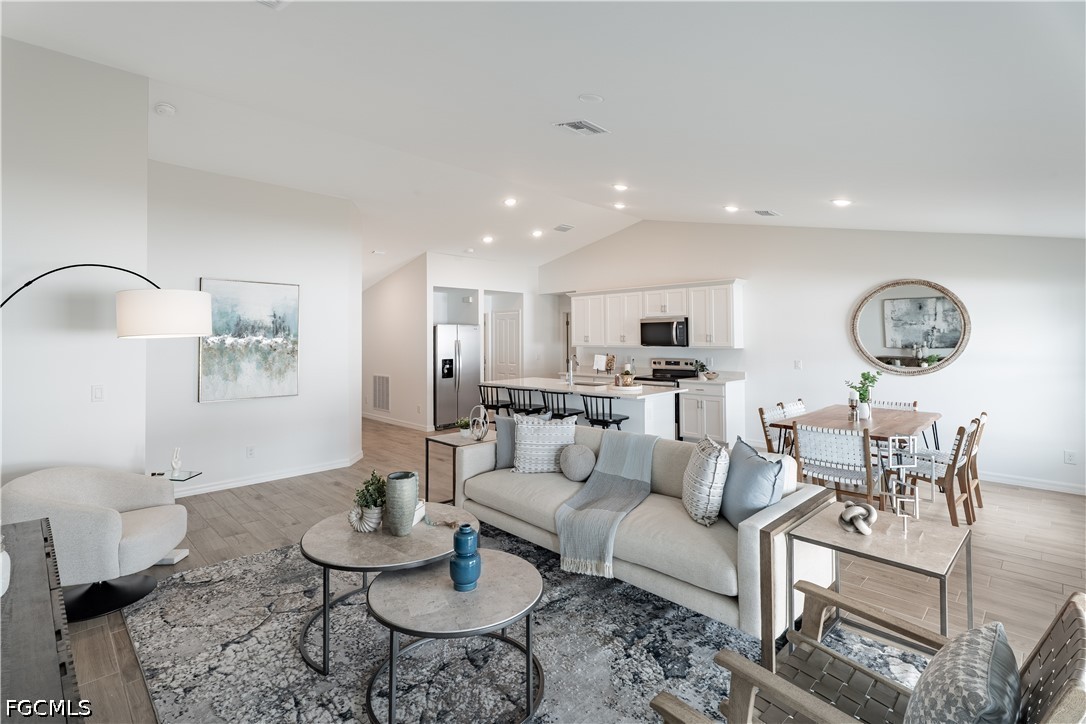 NEW BUILD - Anticipated Completion Date - JULY 2026. SPECIAL INCENTIVES: 4.75% fixed rate FHA/VA financing with $5K closing cost assistance OR 3.99% FHA/VA 5-YEAR ARM + UP to $10K in closing cost assistance/ prepaids OR UP to $20K toward closing cost when using a preferred lender. The Waterford’s expansive 1,812-square-foot design lives even larger than its generous footprint suggests, showcasing a true open-concept layout that feels bright, airy, and exceptionally roomy. A wide gathering room anchored by a vaulted ceiling flows seamlessly into a designer kitchen, creating the perfect environment for entertaining or everyday living. The spacious kitchen features a large center island, shaker-style cabinetry, upgraded, quartz countertops, and stainless-steel appliances including a refrigerator, dishwasher, range, and microwave. The Owner’s suite offers a private retreat with a walk-in shower, separate water closet room, and a generous walk-in closet. Three additional bedrooms share a well-appointed guest bathroom on the opposite side of the home for maximum privacy. Thoughtful details continue throughout the Waterford, including decorative brick pavers on the driveway and covered lanai, professionally designed landscaping and designer-selected paint colors, lighting, and plumbing fixtures all working together to create a home that feels modern, open, and exceptionally comfortable.