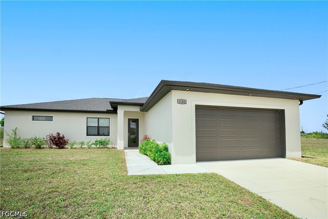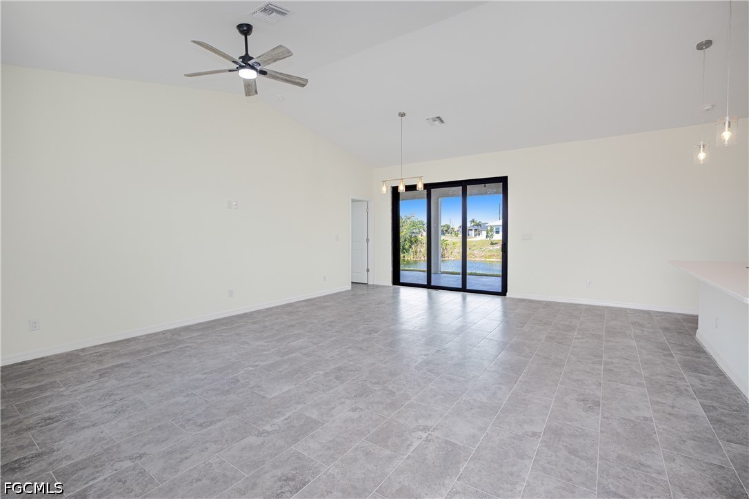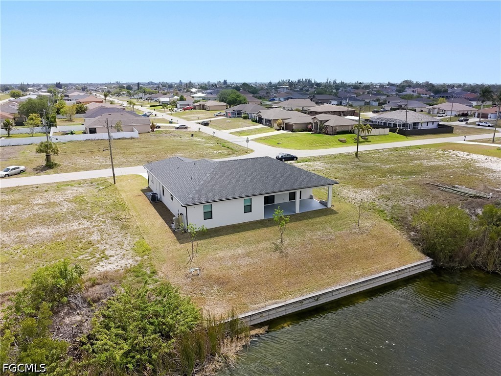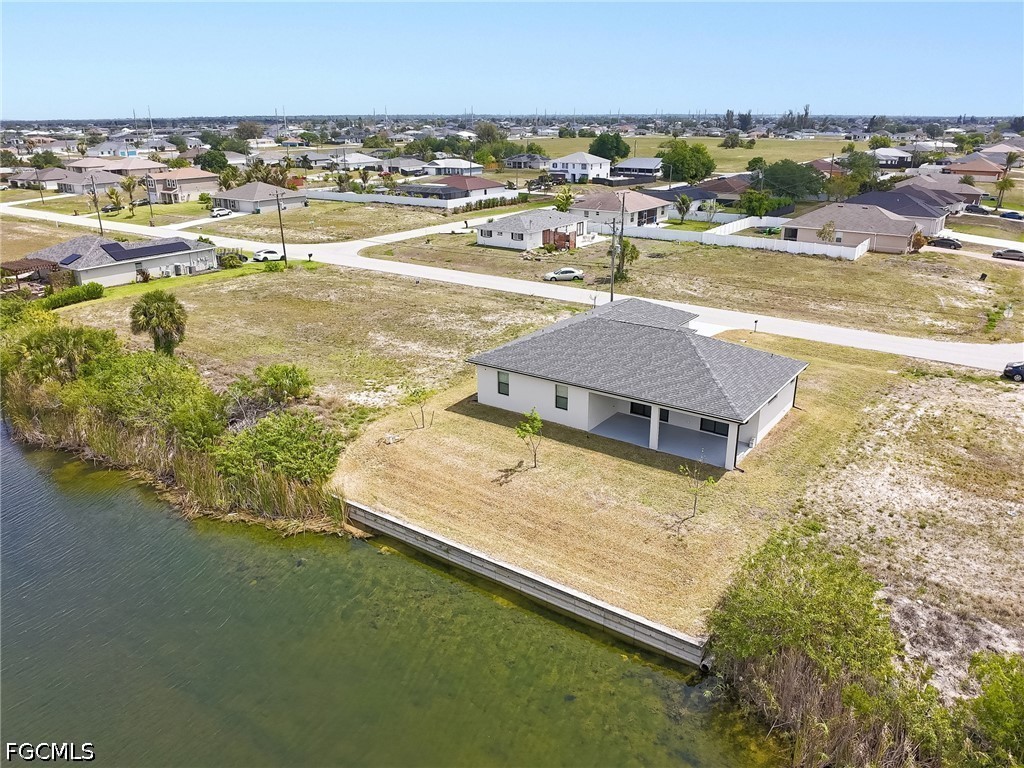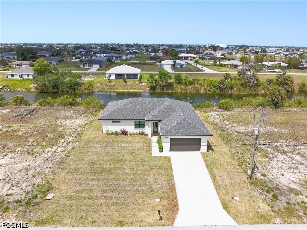 Welcome to your waterfront retreat in Cape Coral! Built in 2024, this beautifully designed 4-bedroom, 2-bath home offers 1,787 square feet of modern living along the scenic Loch Ness Waterway—a freshwater canal with a concrete seawall. Step inside to a bright, open-concept floor plan featuring tile flooring throughout, soaring ceilings, and a seamless flow between the living, dining, and kitchen areas—perfect for everyday living and entertaining. The kitchen is well designed with stylish cabinetry, stainless steel appliances, a spacious island with sink, and ample prep and storage space. The split-bedroom layout offers privacy and flexibility, with a private primary suite and additional bedrooms ideal for family, guests, or a home office. Even the garage stands out with epoxy flooring, helping keep the space clean and polished. Enjoy peace of mind with impact-resistant windows, and enjoy the lanai and backyard overlooking the tranquil canal—perfect for relaxing, fishing, kayaking, or creating your dream outdoor oasis. Located in the growing NW Cape Coral area, this home provides convenient access to top local attractions, including Sunsplash Family Waterpark, Burnt Store Boat Ramp, and miles of scenic walking and biking paths. Whether you're into boating, outdoor adventures, or simply enjoying the Southwest Florida lifestyle, this location delivers. Newer construction, waterfront living, and no flood insurance required, —this home truly has it all. Schedule your private showing today!