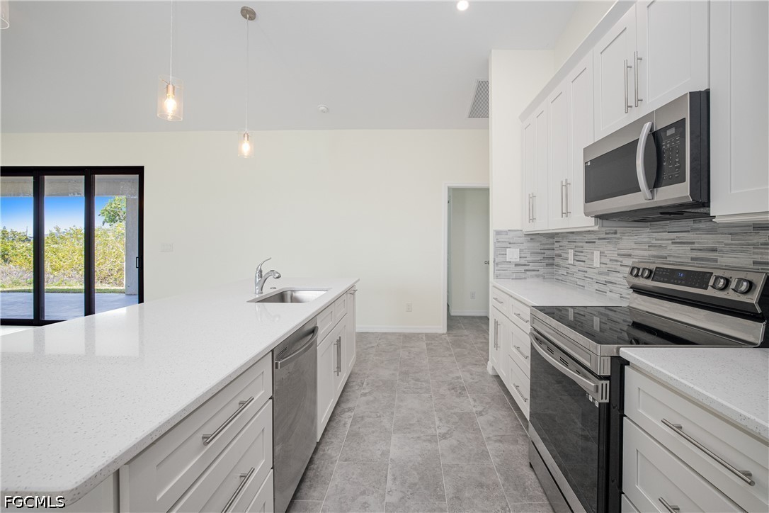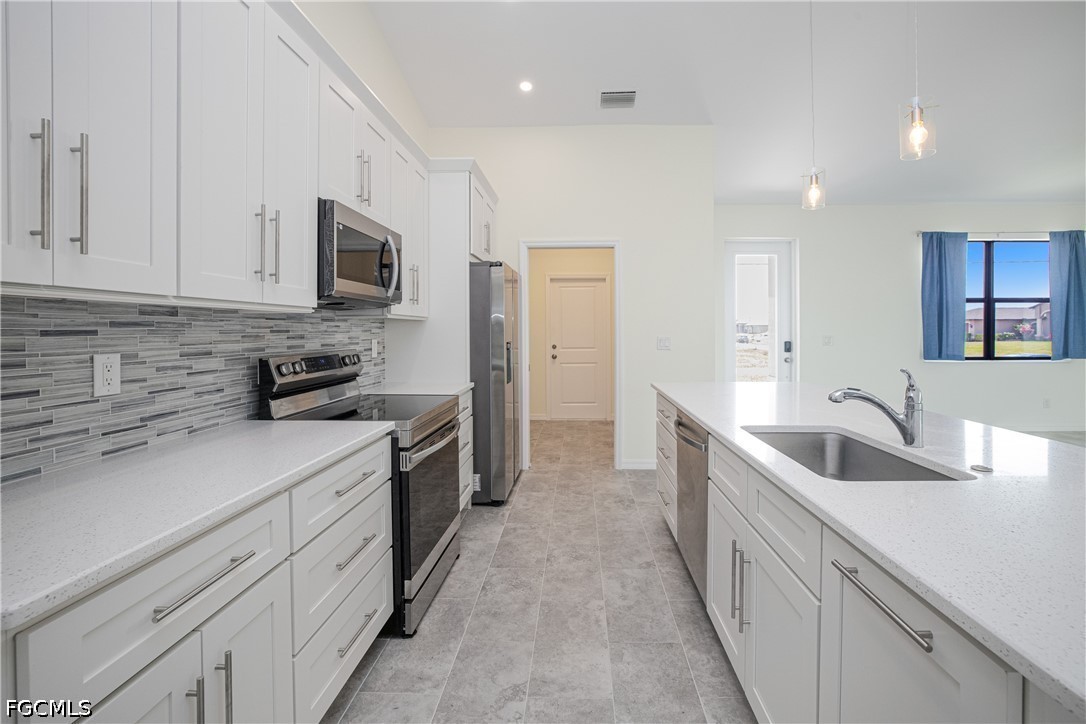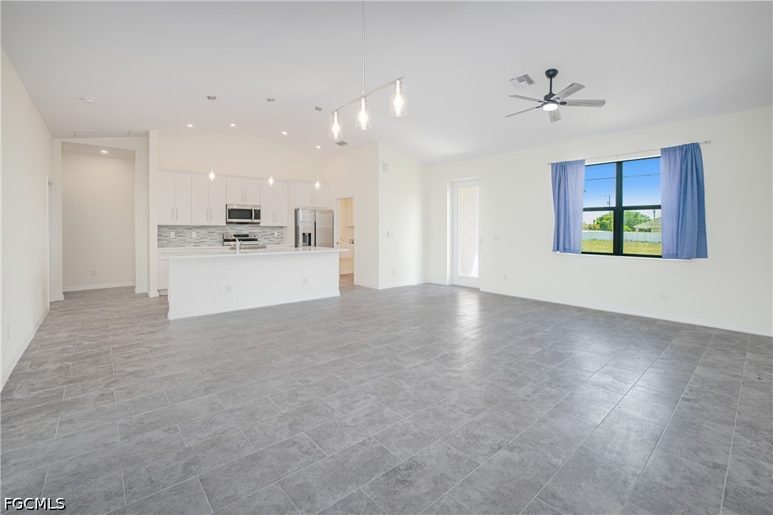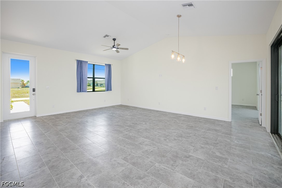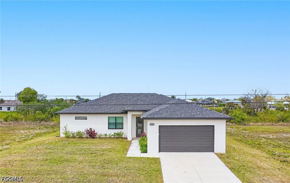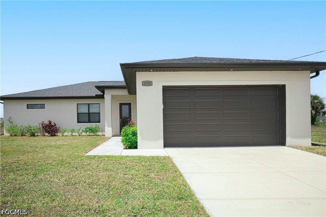 Welcome to your waterfront retreat in Cape Coral! Built in 2024, this beautifully designed 4-bedroom, 2-bath home offers 1,787 square feet of modern living along the scenic Loch Ness Waterway—a freshwater canal with a concrete seawall. Step inside to a bright, open-concept floor plan featuring tile flooring throughout, soaring ceilings, and a seamless flow between the living, dining, and kitchen areas—perfect for everyday living and entertaining. The kitchen is well designed with stylish cabinetry, stainless steel appliances, a spacious island with sink, and ample prep and storage space. The split-bedroom layout offers privacy and flexibility, with a private primary suite and additional bedrooms ideal for family, guests, or a home office. Even the garage stands out with epoxy flooring, helping keep the space clean and polished. Enjoy peace of mind with impact-resistant windows, and enjoy the lanai and backyard overlooking the tranquil canal—perfect for relaxing, fishing, kayaking, or creating your dream outdoor oasis. Located in the growing NW Cape Coral area, this home provides convenient access to top local attractions, including Sunsplash Family Waterpark, Burnt Store Boat Ramp, and miles of scenic walking and biking paths. Whether you're into boating, outdoor adventures, or simply enjoying the Southwest Florida lifestyle, this location delivers. Newer construction, waterfront living, and no flood insurance required, —this home truly has it all. Schedule your private showing today!