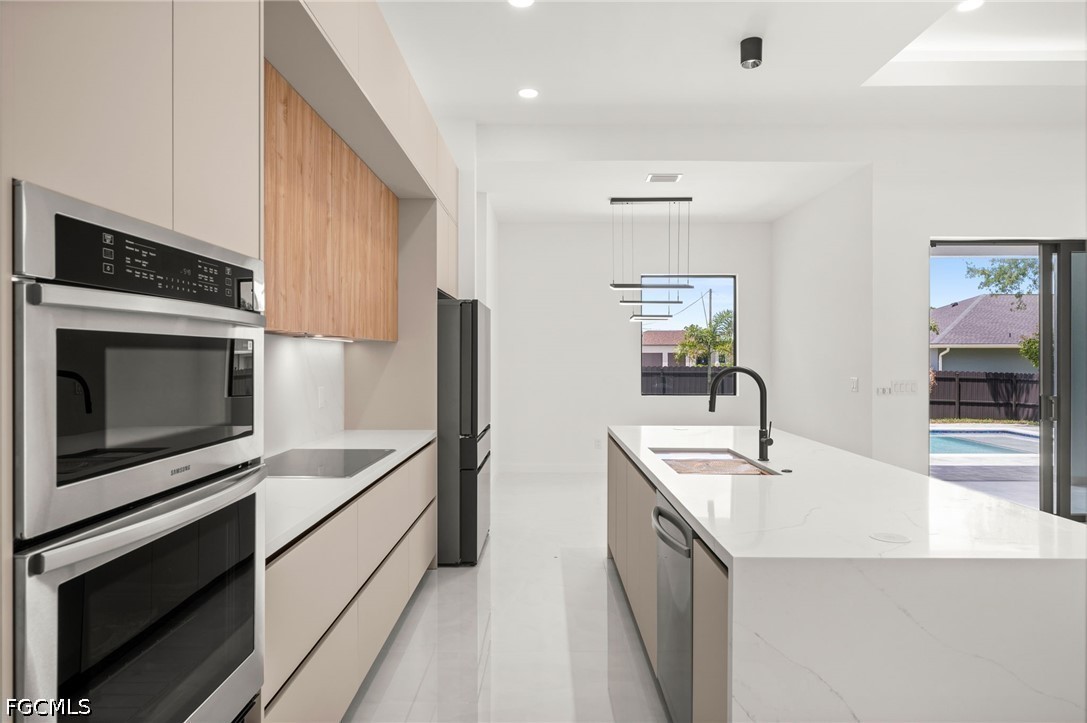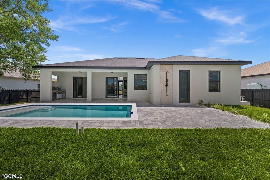 Stunning New Construction home in one of Cape Coral's fastest -growing areas!!! This beautifully crafted residences features a custom-designed kitchen, premium finishes , and high-quality details throughout. The open concept layout is filled with naturallight and seamlessly connects the living, dining and kitchen areas . Every space has been toughtfully designed with style , comfort , and functionality in mind. Enjoy your own private outdoor space with a beautiful pool , ideal for relaxing or hosting guests. Located in a quiet residential neighborhood with easy access to main roads , shopping, dining, and schools , this home offers the perfect combination of elegance , convenience , and investment potential. A true move in ready opportunity with exceptional design and quality.