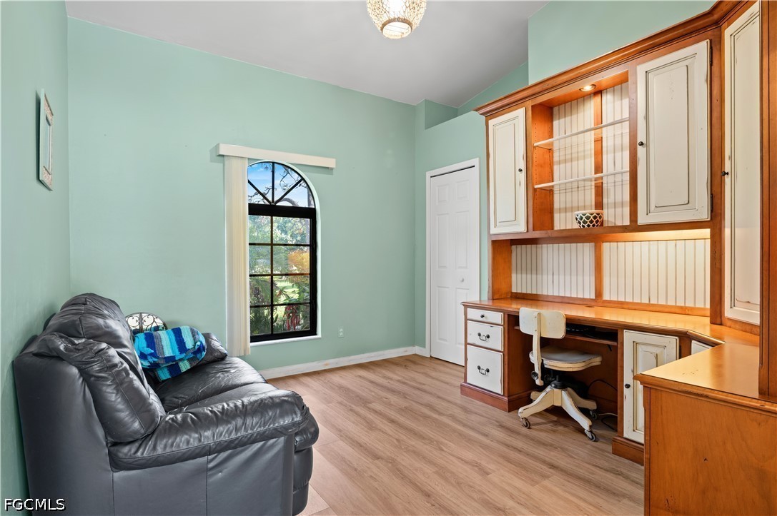 Charming Island Retreat in Pine Island Village with 1469 sq/ft with an additional Florida room adding up to 1640 sq/ft under air. This beautifully maintained 3-bedroom, 2-bath residence is offered fully furnished with the perfect blend of comfort and coastal charm. High and Dry. Positioned on one of the highest points of the island, this home has never flooded and is not in a flood zone, providing added peace of mind. The kitchen features stylish cabinetry highlighted by custom shiplap accent walls and opens to the main living space, which boasts laminate flooring throughout, vaulted ceilings, and beautiful built-in cabinetry that adds elegance and functionality to the main living area. The third bedroom is currently being used as an office and features built-in cabinetry, offering a versatile space perfect for remote work or hobbies. Each bedroom includes a walk-in closet, ensuring ample storage for every room. Both bathrooms have been remodeled with unique mirror accents, and the primary en-suite features a built-in ceiling heater for added comfort. Step into the sunroom, a true highlight of the home, featuring brick flooring, a bamboo ceiling, and tranquil views of Lake Heather. It's the perfect spot to unwind, enjoy your morning coffee, entertain guests, or simply take in the breathtaking sunsets over the lake. Additional features include a 4-year-old roof, built-in smoke detectors, solar panels for energy efficiency, brand new washer and dryer that stay with the home, and a whole-home Aquasana water purifier system. Residents of Pine Island Village enjoy access to a community pool, and the location is just minutes from local shopping, dining, and all the island conveniences. Don’t miss the opportunity to own a slice of paradise in this welcoming island community!