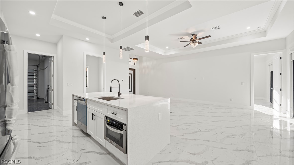 The Seller will offer $10,000 in closing cost assistance, conditional upon the Buyer using the Seller's preferred lender. This luxurious three-bedroom plus den, three-bathroom residence offers a perfect blend of style, sophistication, and convenience, nestled in a prime location near educational institutions, medical facilities, shopping districts, and entertainment hubs. Recent updates include the addition of blackout blinds, installation of a hood fan, drawer microwave, and conversion of the outdoor kitchen to a full kitchen, making this property truly special.