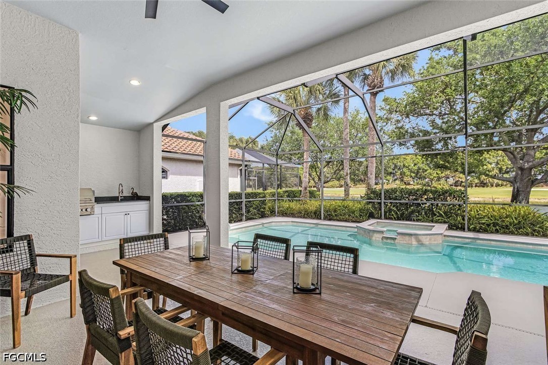 Welcome to 10001 Isola Way – A Stunning, Fully Renovated Showpiece! This light-filled, modern home boasts 2 spacious bedrooms, a versatile den, and 2 beautifully renovated bathrooms. Every inch of this property has been meticulously upgraded to provide luxurious comfort and style. As you step inside, you'll be greeted by natural light streaming through showcasing the exquisite open concept layout. The heart of this home is the fully updated gourmet kitchen, equipped with top-of-the-line appliances, custom chandelier and sleek quartz countertops. The open layout flows seamlessly into lanai for an extended living space perfect for entertaining or relaxing. The primary suite is a true retreat with its floor to ceiling tile work, modern vanity and walk-in closet. The guest bathroom has also been tastefully updated, offering elegance and functionality. Additional highlights include: state-of-the-art app-controlled smart home features, New luxury flooring, custom cabinetry throughout, high end lighting, resort-style backyard with an updated pool equipment and brand new outdoor grill! Located in the award-winning Miromar Lakes community, this home offers an unparalleled lifestyle. Miromar