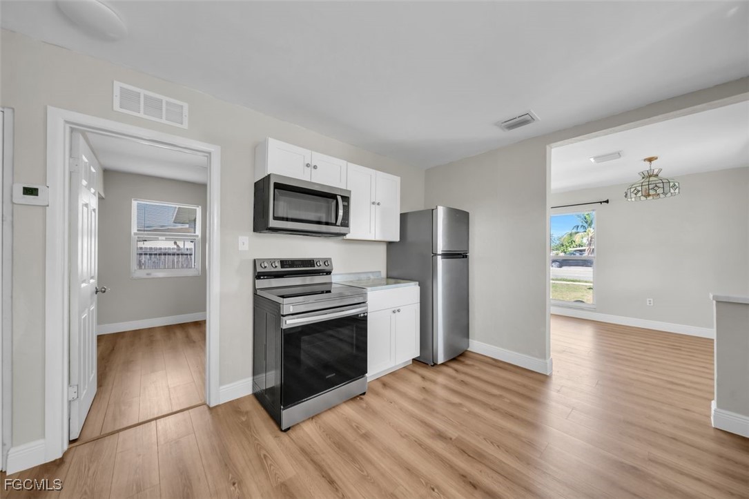 This home has been recently renovated with brand-new hard surface flooring throughout, a completely updated bathroom, and new kitchen appliances, offering a fresh and modern feel. The light-filled living area flows seamlessly into the screened lanai, perfect for relaxing or entertaining.
