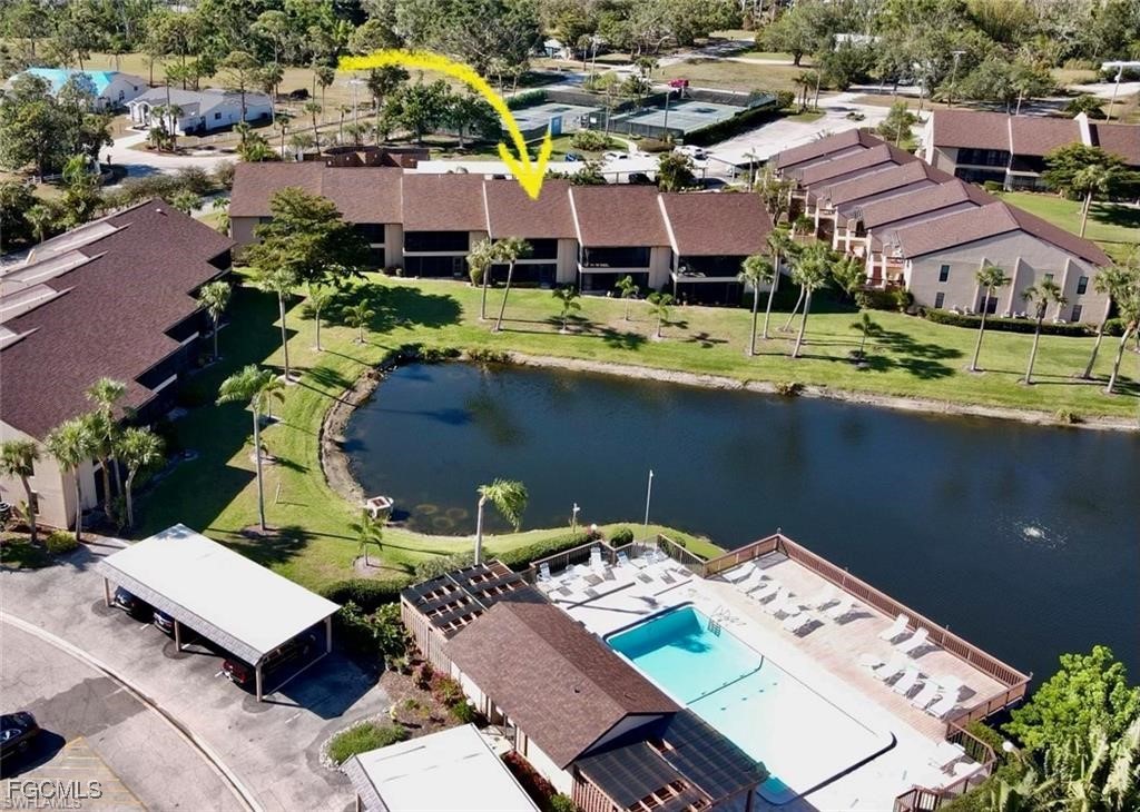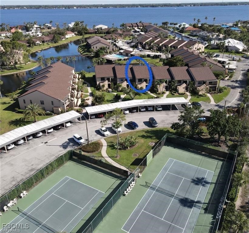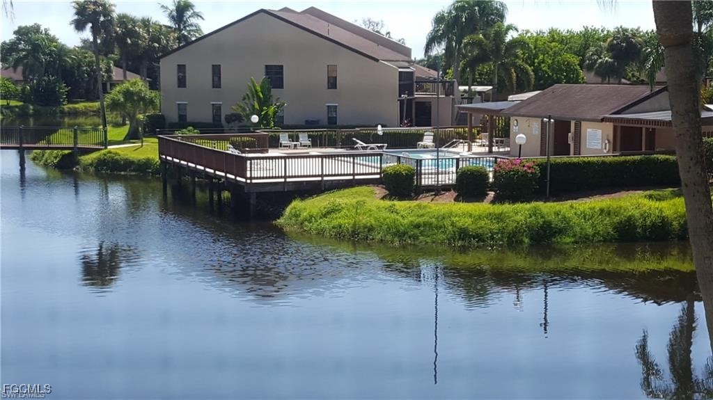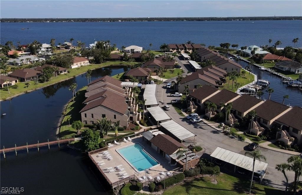 FULLY FURNISHED Turn-key CONDO! Immaculately maintained second floor home, which features cathedral ceilings & lovely breezes that flow throughout on those perfect Florida eves! This home shows like a model, with tranquil views from the large master bedroom & living room through a full slider w/views of the lake, bridge, pool & soothing fountain from the screened & tiled lanai. This refreshing home is being offered turn-key, just park under your covered carport, turn the key, open the door and start enjoying your new Florida home! Admiralty Yacht and Racquet Club is located on the Caloosahatchee River, with resort style facilities including a heated community pool, boating, tennis, pickleball, clubhouse with active friendly members. This condo features new faucets, toilets, tiled lanai floor, new living room couches/sleeper, new dining room set, wet bar & screened/slider covered porch overlooking the lake and enjoying peaceful evenings in this SWFL paradise. Walgreens and Publix right down the street. Quick access to 1-75, shopping, downtown, <30 minutes to RSW & Punta Gorda Airports. This Condo/entire building was not damaged by any hurricane.