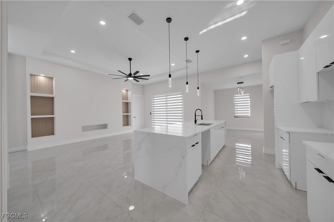 Welcome Home, this luxurious home is just finished. this stunning model is ideally located in a peaceful neighborhood, you will love this bright and beautiful single family home that features an open-concept floor plan 3 spacious bedrooms, plus den/office, and 2 full baths. Master features huge walk-in shower, closets and dual sink, stunning gourmet kitchen, appliances, very expanded lanai to gather family over the weekend, and beautiful zebra blinds.