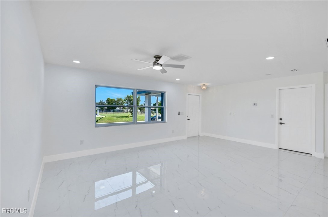 Welcome to your Southwest Florida retreat! This stunning corner-lot home has been completely renovated and offers everything today’s buyer is looking for—style, comfort, and convenience. Step inside and be greeted by beautiful high-gloss tile flooring throughout and a light, bright, and airy open floor plan that flows effortlessly from room to room. The spacious split-bedroom layout provides privacy for family or guests, while the large family room is perfect for entertaining or relaxing after a long day. The chef’s dream kitchen features all-new stainless steel appliances, a center island with bar seating, abundant cabinet space, and generous counters for meal prep and gatherings. With approximately 1,375 sq. ft. of living space, this home offers 3 large bedrooms and 2 full bathrooms—all thoughtfully updated. The covered and screened lanai extends your living area outdoors, ideal for enjoying Florida’s sunshine or hosting weekend get-togethers. The expansive backyard provides plenty of room for kids, pets, or even a future custom pool! The rear of the home faces west—perfect for experiencing Southwest Florida’s breathtaking sunsets from the comfort of your lanai or backyard. Additional features include hurricane impact windows and doors, providing peace of mind year-round. Nestled on a quiet street close to schools, shopping, dining, parks, downtown Fort Myers, and the beaches of Sanibel and Pine Island—this home truly has it all. Perfect for first-time homebuyers, investors, downsizers, or anyone seeking a sunny winter escape—this Southwest Florida gem is move-in ready and waiting for you!
