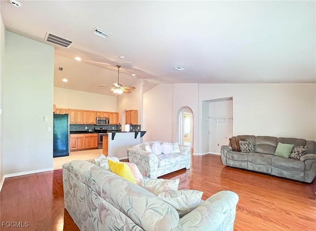 Welcome to this charming 4-bedroom, 2-bathroom home in Lehigh Acres, Florida. With 1,924 square feet of living space and situated on a generous half-acre lot, this residence offers a comfortable and spacious environment. Inside, you'll find hardwood floors throughout, creating a warm and inviting atmosphere. The well-appointed kitchen is perfect for culinary endeavors, and the ample living room provides a cozy space to relax. With four bedrooms, there's plenty of room for family and guests. The outdoor area is ideal for entertaining and activities, with a generous half-acre lot offering endless possibilities. The convenient location provides easy access to amenities, including shopping centers, restaurants, parks, and recreational facilities. A new AC unit ensures year-round comfort in Florida's pleasant climate. Don't miss the opportunity to make this charming Lehigh Acres home yours and enjoy the relaxed Florida lifestyle in a spacious and inviting setting.