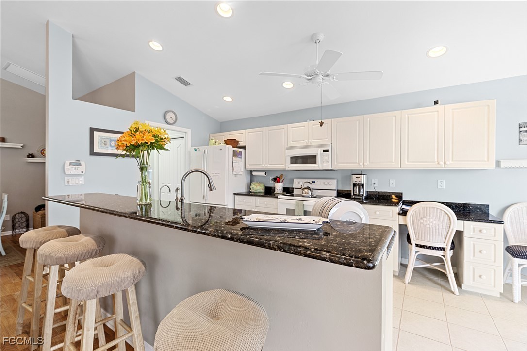 Welcome to year-round sunshine, warm weather, and activities to enjoy like golf, tennis, swimming, and more. Located in Sable Springs Golf and Racquet Club, a beautiful new home awaits you. Well-maintained and perfectly landscaped with palm trees and tropical plantings all around, this house sits with rear views of the golf course from the extra-large lanai in the back of the house. From the screened front entryway to the tiled foyer, walk into a great room with its warm wood laminate floors, high ceilings, and an abundance of natural light from the rear door wall. Painted in a soft, light color palette, the space offers a formal dining area, while the main room offers plenty of seating space for family and guests with views of the lanai. Kitchen highlights include high ceilings with recessed lights and a ceiling fan. The white tiles, along with white, raised-panel cabinets, keep the area light and airy. Warm, shaded dark granite counters make for perfect accents. The sink area and elevated breakfast bar to the great room are perfect to keep the cook part of the action. A dinette space at the end of this galley kitchen offers views of the outside and lanai access. To the right of the foyer is a den with a beautiful bay, a built-in office surround, and a daybed. Nearby, the guest bedroom offers ample space and a walk-in closet. The hall bath nearby has a tub/shower unit, a single sink vanity, and its own linen closet. The large primary suite sits toward the back of the house with two windows and a door wall access to the lanai. The Primary bath includes 2 narrow, glass block accent windows for added light and privacy over the large soaking tub. A large walk-in shower, private commode area, and dual sink vanity complete this space. The lanai runs the course of the entire back of the house and includes areas for under-roof dining as well as screened, open-air space for dining, grilling, and enjoying the sun! Even the garage door can be left open for doing work or the laundry, when shielded by the popular, retractable Skeeter Beater garage door screen. Located close to dining, shopping, entertainment, and more… Call today to see this lovely home and community.