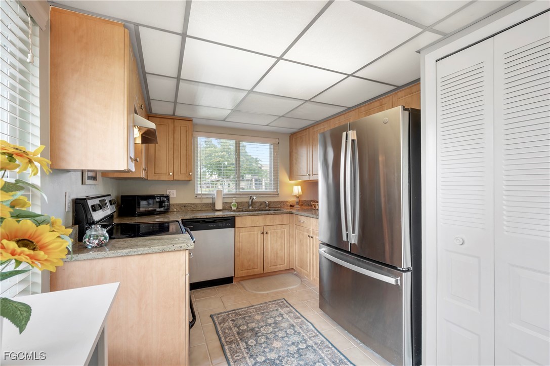 Enjoy Florida living! Don't miss this 2 bedroom, 2 bath condo, that offers a beautiful upgraded kitchen, stainless appliances, private terrace for gardening &/or barbecuing. This split bedroom floorplan affords privacy. For your convenience, there is also an inside laundry room with extra storage. For fun, take a short walk down to the large clubhouse and enjoy the beautiful pool, have a quick game of shuffleboard, or relax in the sun. If you enjoy an active community, you can participate in the many social events that they offer. Other features include an assigned parking spot close to your door for easy access, and guest parking is available. Close to hospitals, schools, shopping, and dining. Come see this well cared for community, with mature landscaping.