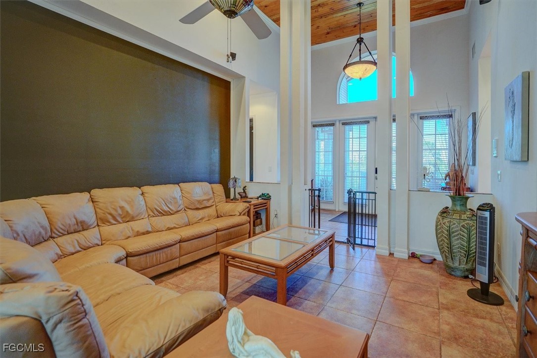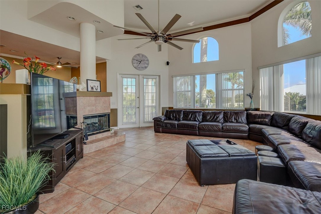 Move right into this Light & Bright 3 Bedroom + Den & Office (can be used as 4th Bedroom), 5 Bath (including outdoor Pool Bath on Deck/Balcony) Canal Front Custom Built Key West / Island Style Home with Elevator, Volume Ceilings, Tile Throughout Living Area and 10 Car Garage with Workshop & Utility Sink. partially climate controlled, surrounded by Lush Foliage in this secluded Gated Boating Waterfront Community with Gulf Access TIDEWATER ISLAND. Enjoy the Tropical Setting nestled amongst the Natural Wildlife, Birds and Nature close to Restaurants, Shopping, Airport, Major Roads, I-75, Schools and Florida Gulf Coast University. Improvements & Updates to this immaculately kept Home & Lush Landscaping include, but not limited to the following: 2023 - Freshly Painted, New Gutters, Soffits & Fascia, Outdoor Specialty Trim Lights with a variety of features & settings, Pool Pump replaced, New Water Softener System installed, Ceiling Fans in Great Room & Kitchen replaced. 2024 - Pool Heater replaced, Garbage Disposal replaced & motor in Trash Compactor. 2025 - Front Double Entry Staircases redone, 2nd Guest Bedroom Bathroom updated, replaced A/C Condenser & Air Handler, replaced Pool Area Fans, Pool Area Tile resealed, tile in Front of garage resealed, Irrigation System replaced with above ground Control Center, New wood ceiling installed in Den. Other features include Granite Countertops in Kitchen and Baths, Central Vac, Hydraulic Elevator, 2 Ensuite Bedrooms with Private Bathrooms, Pool Waterfalls, Pool Bar with Sink, Oversized Master Bedroom with Sitting Area, Oversized wrap around Decks/Balconies, Electric Fireplace, Above Ground Spa, Outlet for Generator, Electric & Water to area for Dock and so much more! NO WATER OR FLOODING FROM IAN IN LIVING AREA ON 2nd Floor * Turnkey Furnished Pkg available *