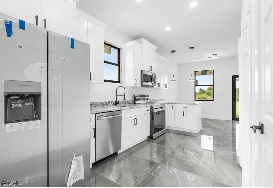 Welcome to your dream home in the heart of Lehigh Acres! This brand-new construction offers an exceptional RENTAL opportunity with its spacious 1,123 square feet of living area. Perfectly designed for a family or a group looking for comfort and modern living, this home features a bright and open floor plan with three well-sized bedrooms and two full baths. You'll love the elegant tile flooring throughout the house, complemented by impact windows and doors that provide peace of mind. The kitchen is a chef’s delight, boasting granite countertops, soft-close cabinets, and a complete Kitchen stainless steel Appliances package. Enjoy the Florida lifestyle on your open lanai, or take advantage of the convenient 1-car garage with an electric door opener. this home is ready for you to move in and start enjoying the desirable location. Better than a condo or apartment, this property offers the perfect blend of style, comfort, and practicality. Don’t miss out on this fantastic opportunity