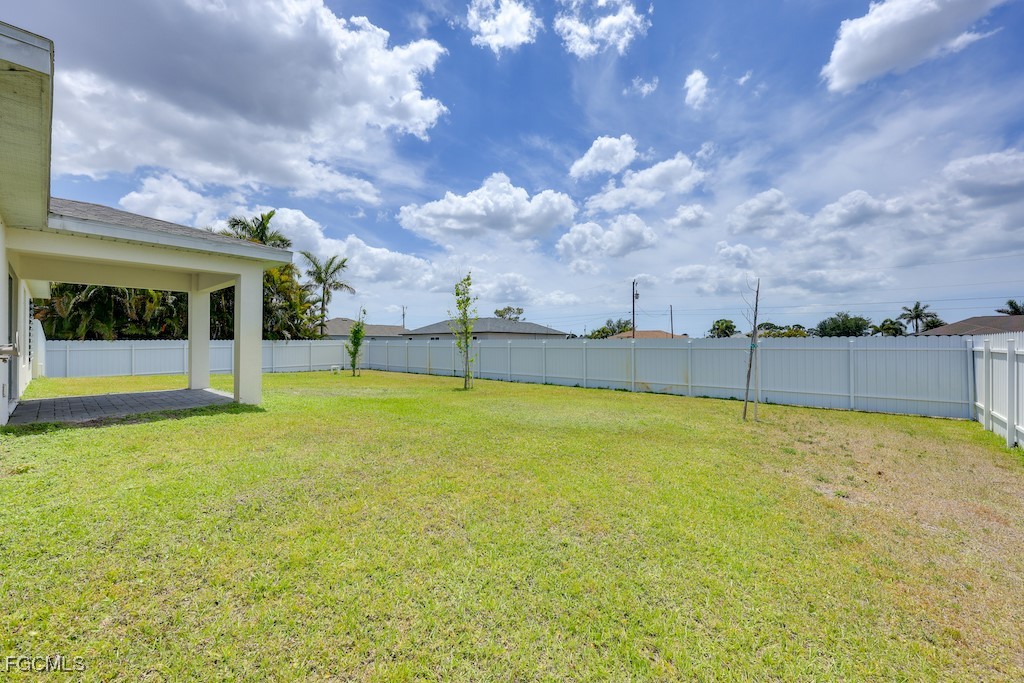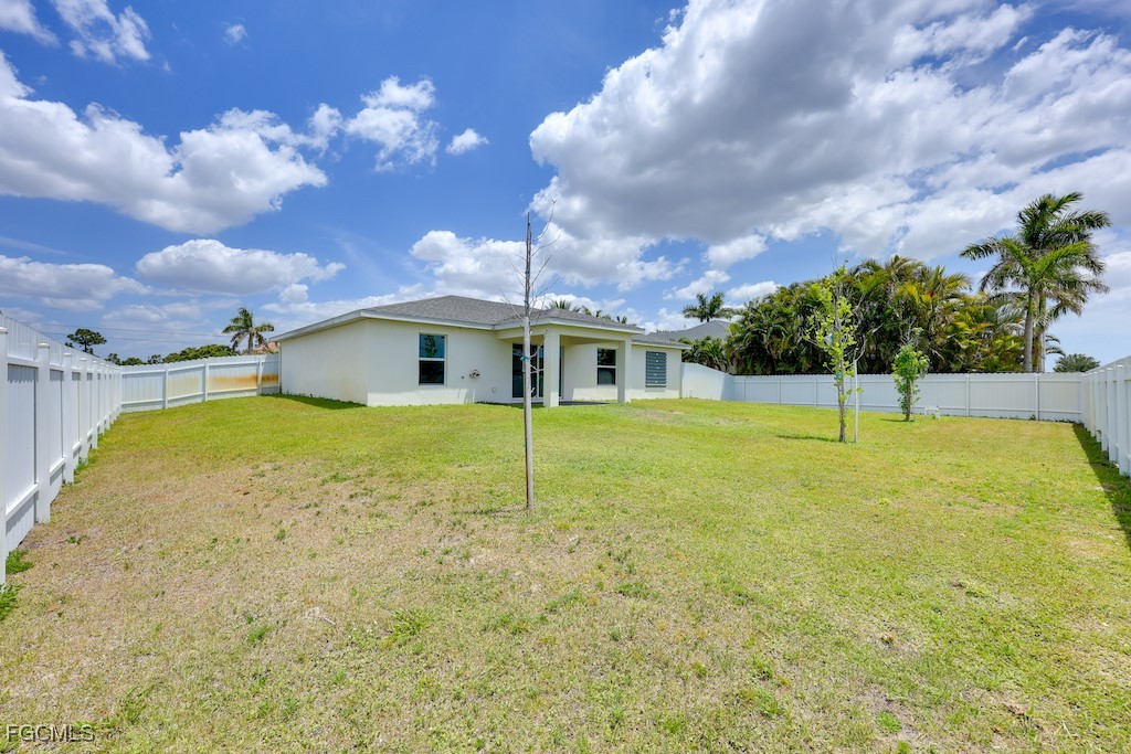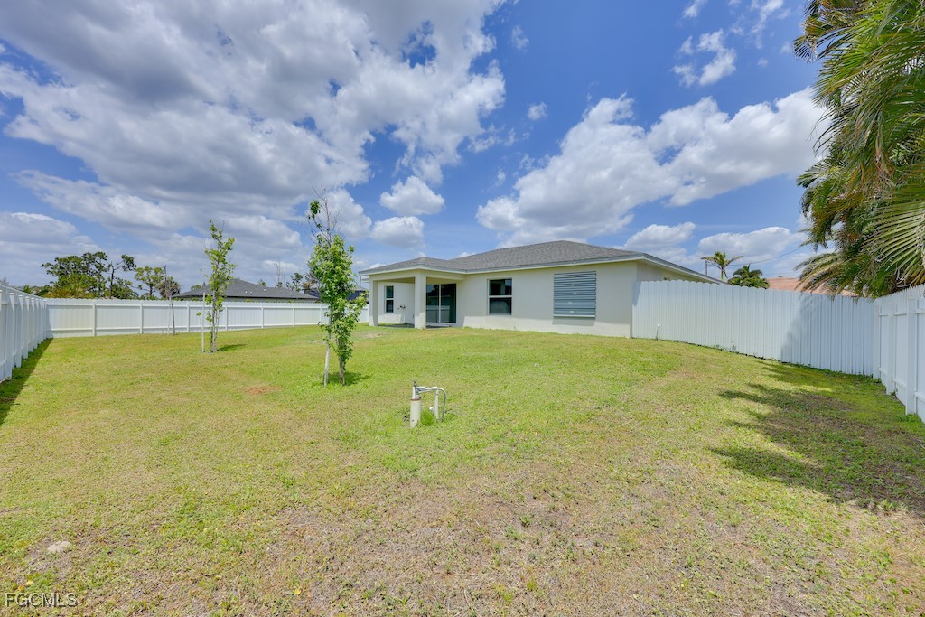 Welcome to your dream home in beautiful Cape Coral, FL! Built in 2023, this stunning single-family residence offers 1,651 sqft of modern living space with 4 spacious bedrooms and 2 full bathrooms. Step inside to discover an open-concept layout with stylish finishes, a bright and airy kitchen, and plenty of room for family living or entertaining. The fully fenced backyard provides privacy and the perfect spot for kids, pets, or outdoor gatherings. Located in a highly desirable area, you're just minutes from shopping, dining, schools, and the best of Southwest Florida living. Don’t miss this move-in-ready gem!