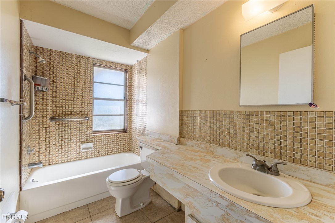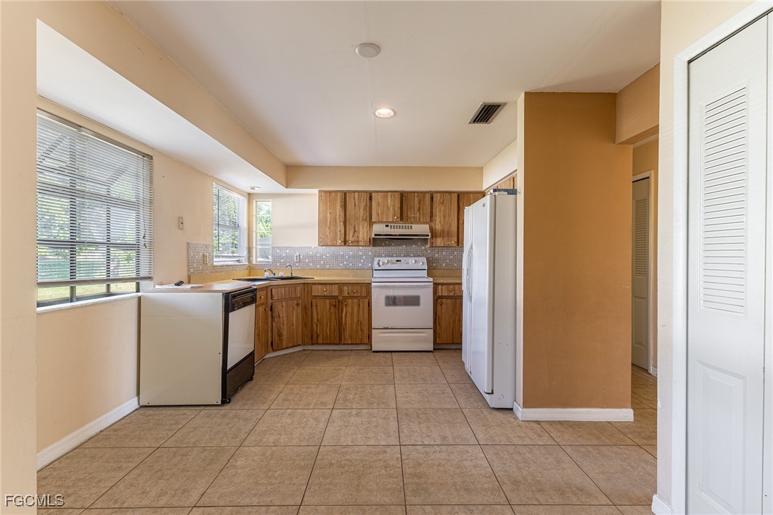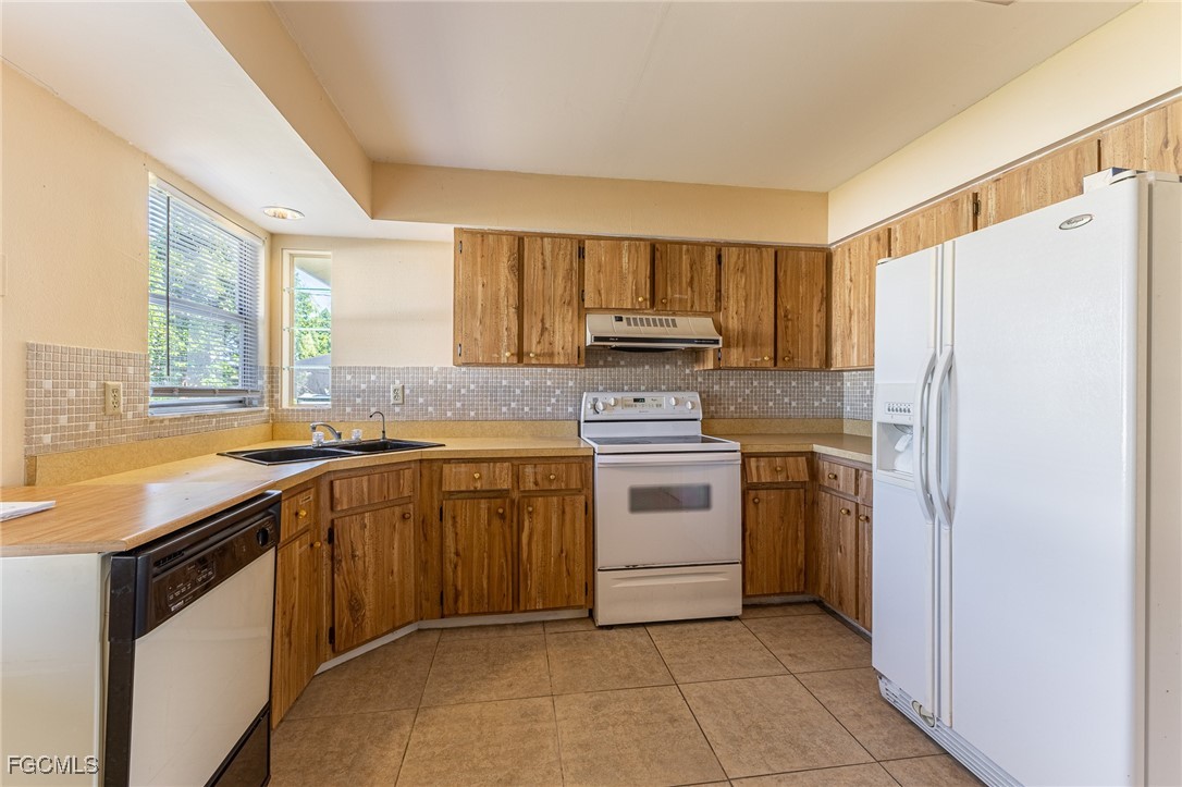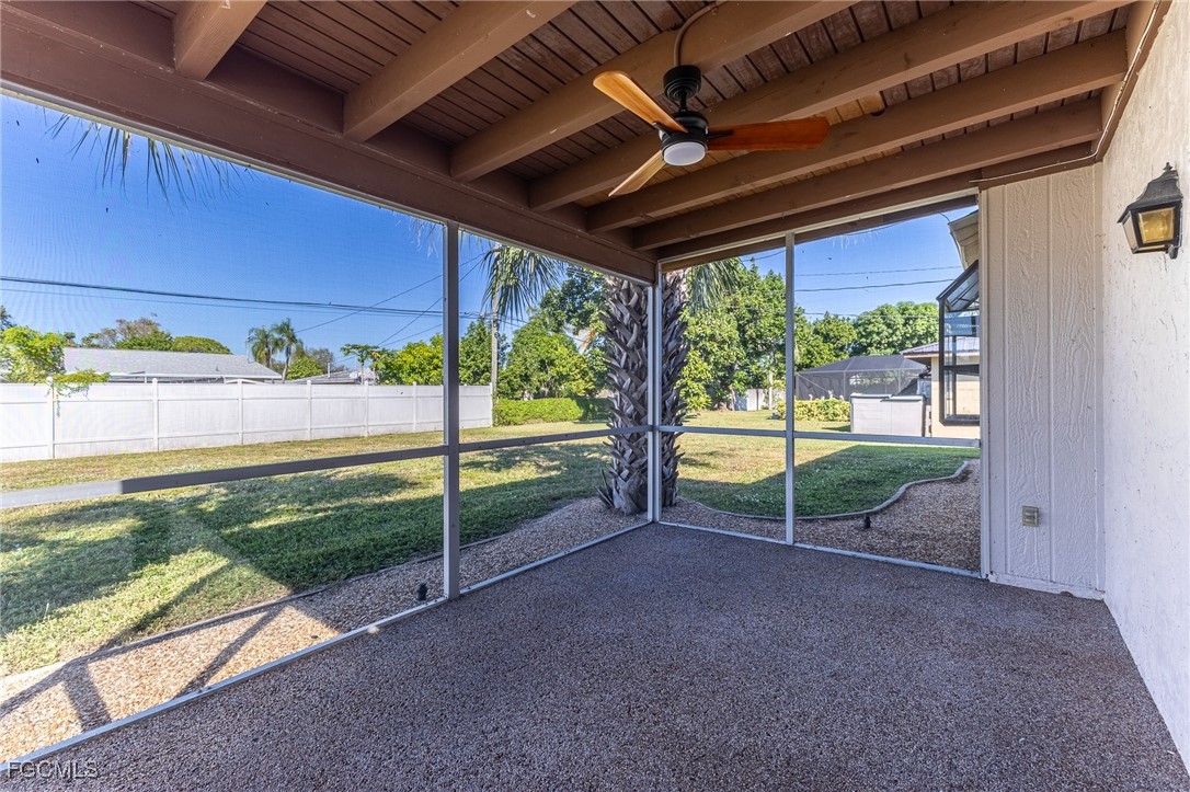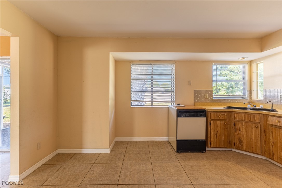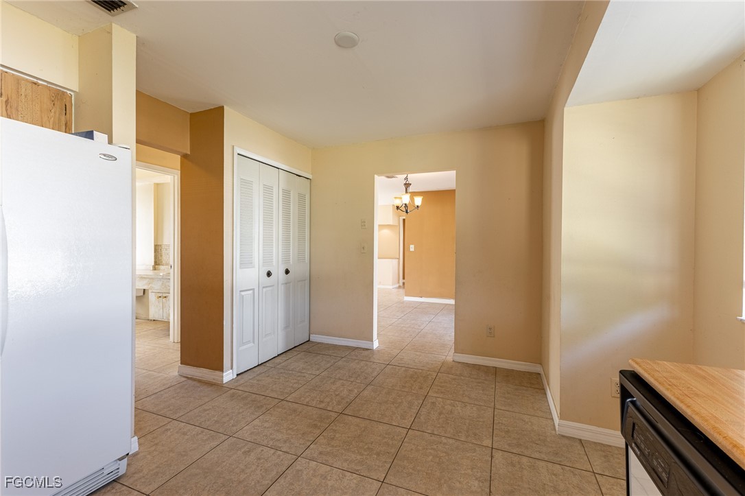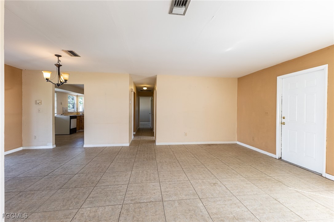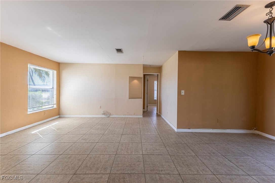 Welcome to Cape Coral. Flood Zone X. This home is centrally located within walking or biking distance to downtown. Close to the Cape Coral Bridge, this house is waiting for you! 3/2 tiled throughout, the home is retro! This beauty is tiled through out. Newer A/C and roof and no flood insurance required. The living room is spacious with a dining area. Sliders out to the screened lanai and the backyard. The kitchen has eat in dining and a window over the sink to make doing dishes more enjoyable! The master bathroom has a walk in shower. The second bathroom has a tub/shower combo. This house is really a gem waiting for your personal touch!