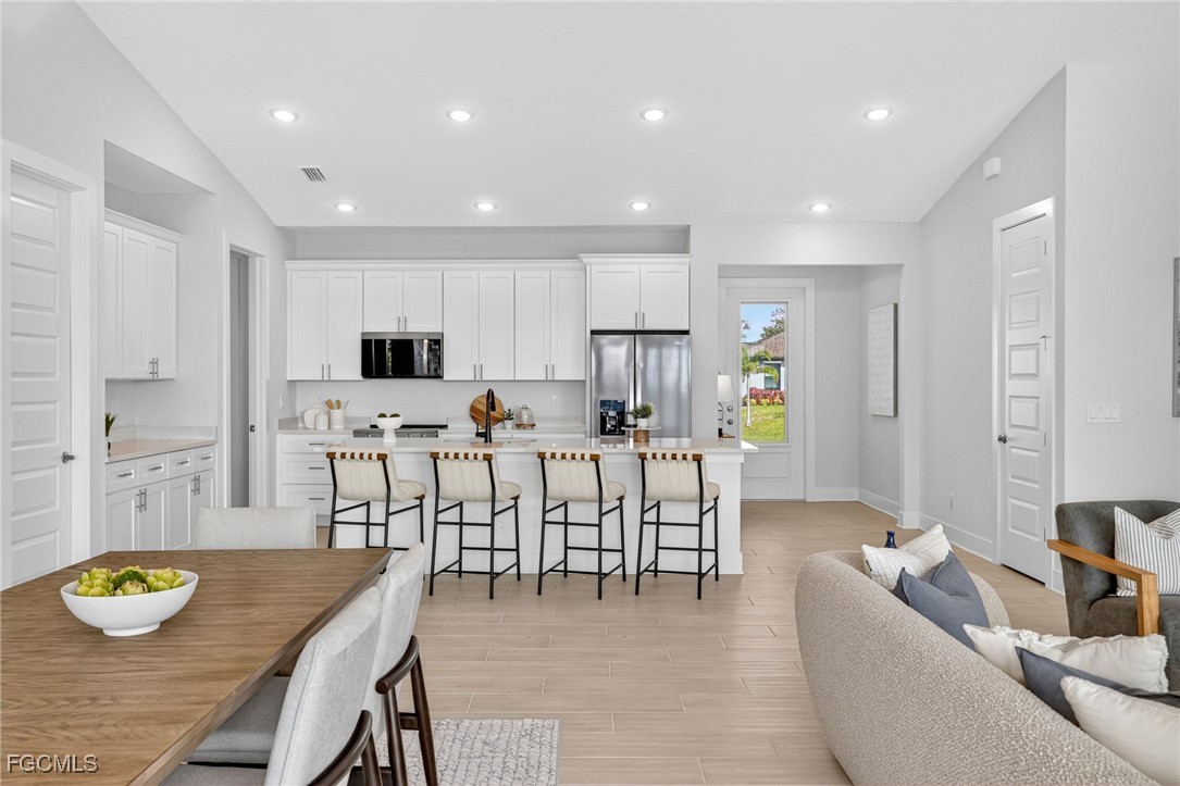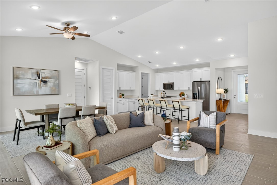 Introducing the Coral Haven Plan, where luxury and waterfront living meet in perfect harmony. Designed exclusively for waterfront homesites, this expansive residence captures the essence of the Sunlife lifestyle with its seamless indoor-outdoor connection. A 24-foot-wide sliding glass door opens to an enormous screened lanai featuring a heated pool and spa, offering ample space for both shaded relaxation and sun-drenched lounging. From the moment you arrive, the attention to detail is evident—from the pristine paver driveway to the elegant finishes throughout. Inside, natural light pours across gleaming porcelain tile floors and up to soaring ceilings adorned with detailed crown molding. The modern kitchen is a showpiece, equipped with stainless steel appliances, all-wood cabinetry with soft-close doors, quartz countertops, a large island with breakfast bar, and a spacious walk-in pantry. The thoughtful split floor plan provides exceptional versatility, ideal for multi-generational living, remote work, or growing families. Two primary suites each feature tray ceilings, walk-in closets, and full en-suite bathrooms, offering comfort and privacy for all. With impact windows and no flood zone, expect extremely reasonable insurance rates. This home blends sophistication, functionality, and peace of mind in one extraordinary home. This is the Coral Haven Plan.