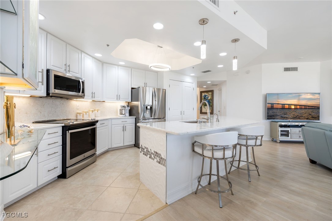 Discover unparalleled waterfront living in this 10th-floor, fully furnished luxury residence at the prestigious North Star Yacht Club, perfectly positioned on the Caloosahatchee River to capture some of the most spectacular views in the entire community. This exquisite 3-bedroom, 2.5-bath condominium showcases sweeping river, marina, and sunset panoramas from two expansive balconies and includes two premium indoor parking spaces and two storage units.