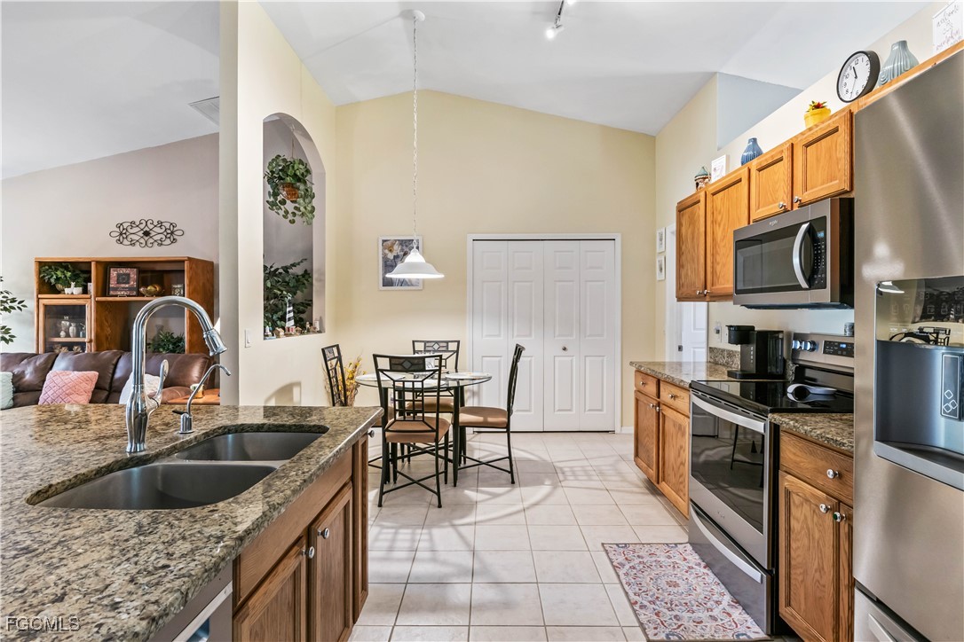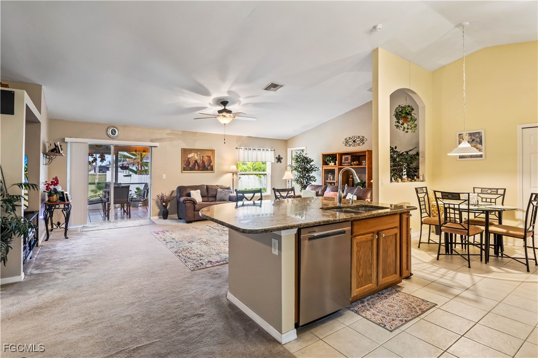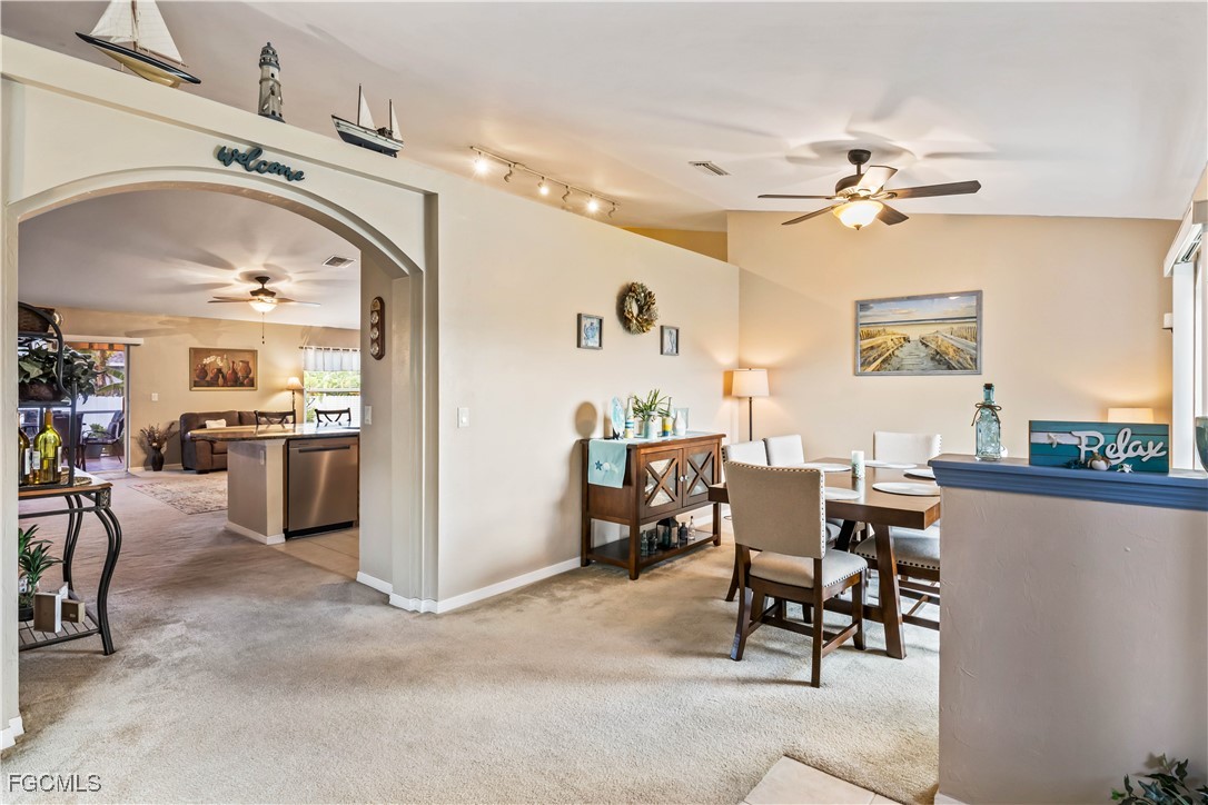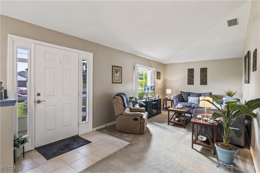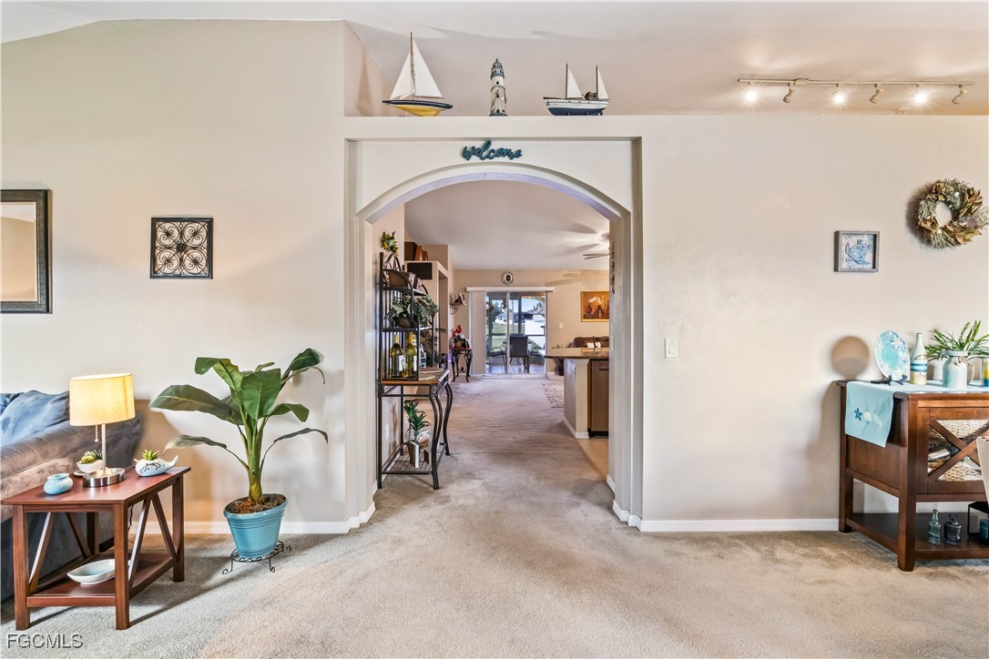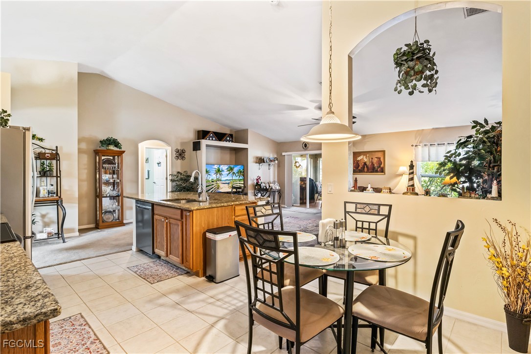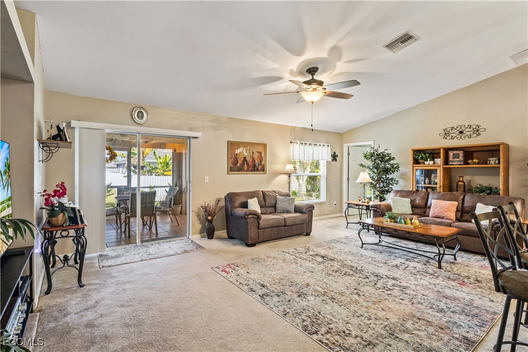 Great 3/2/2 home in NW Cape Coral and Not in a Flood Zone! Enter through the screened front porch area to the open floor plan. Home features a formal dining room, living room, great room plus eatin kitchen. The primary bedroom has a walk in closet and the bath has double sinks and separate soaking tub and shower. Updates include Hurricane windows (2020), New roof (2022) washer/dryer 1 year old, upgraded kitchen counters, and gutters. Very nicely landscaped in the front and the back. Sit out back in your screened lanai and enjoy all the greenery. Close to Coral Oaks Colf course, a new linear trail and the Pine Island Corridor that has plenty of shopping and restaurants. Call today to schedule your showing.