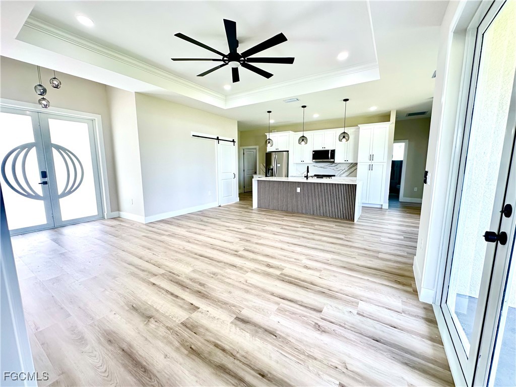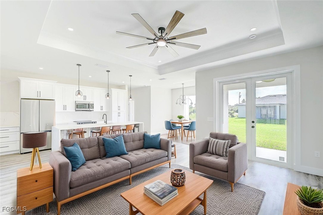 Welcome to this beautifully ready to move in 3-bedroom, 2-bathroom home with a spacious den, located in the sought-after Richmond Lehigh Acres neighborhood. This brand-new construction boasts a perfect blend of modern design and functional features, ideal for comfortable living. As you enter, you’re greeted by high tray ceilings and the sleek LVP flooring that flows throughout the open-concept layout, highlighting the home’s spaciousness and bright, airy feel. The heart of the home features a gourmet kitchen with gorgeous quartz countertops and backsplash, and a large island perfect for cooking and entertaining. High-end stainless steel appliances complete the space, making it a dream kitchen. The living area is flooded with natural light through impact doors and windows, offering both beauty and peace of mind. Elegant light fixtures and charming barn doors add a touch of sophistication to every room. The master suite is a true retreat with an en-suite bath featuring walk-in shower with glass doors, and plenty of closet space. The additional bedrooms are well-sized and share a beautifully designed second bathroom. Enjoy the convenience of a two-car garage and modern finishes throughout, making this home the perfect choice for the new owner. NO HOA and NO FLOOD INSURANCE. Don’t miss the opportunity to make this home your own! Schedule a tour today to experience all that this stunning new construction has to offer.