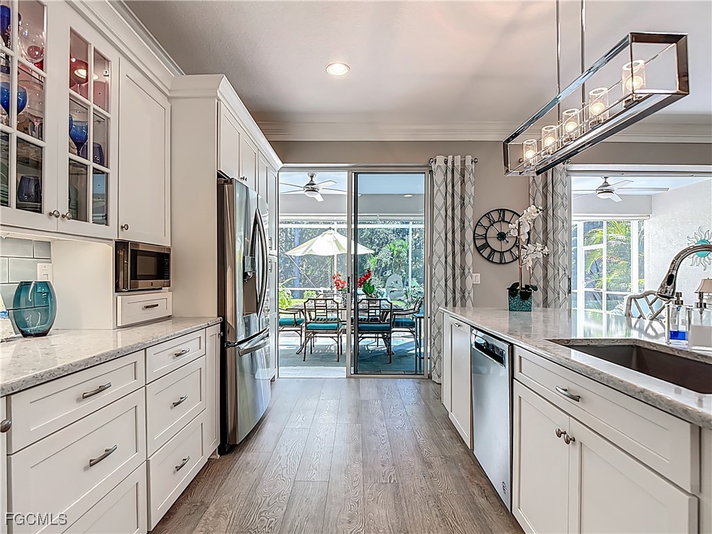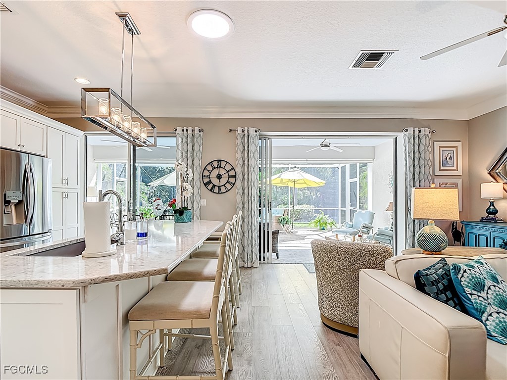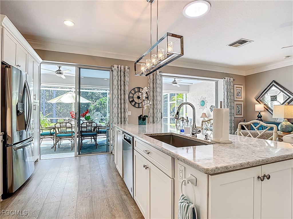 The chef’s kitchen will make every cook smile with its 42" soft-close cabinets with accent lighting, quartz counters, stainless steel appliances, tile backsplash, and solar tube for extra natural light. Luxury vinyl and tile flooring throughout—no carpet anywhere! Stylish barn doors add both flair and function, providing privacy for guests or separation for the bonus space.