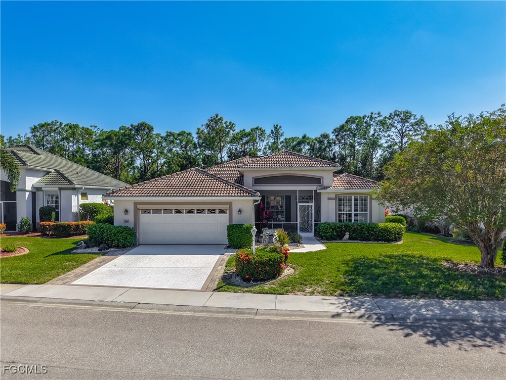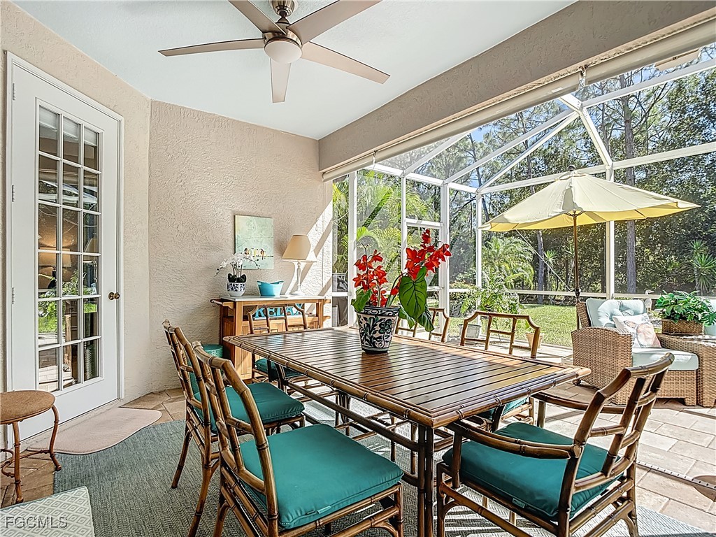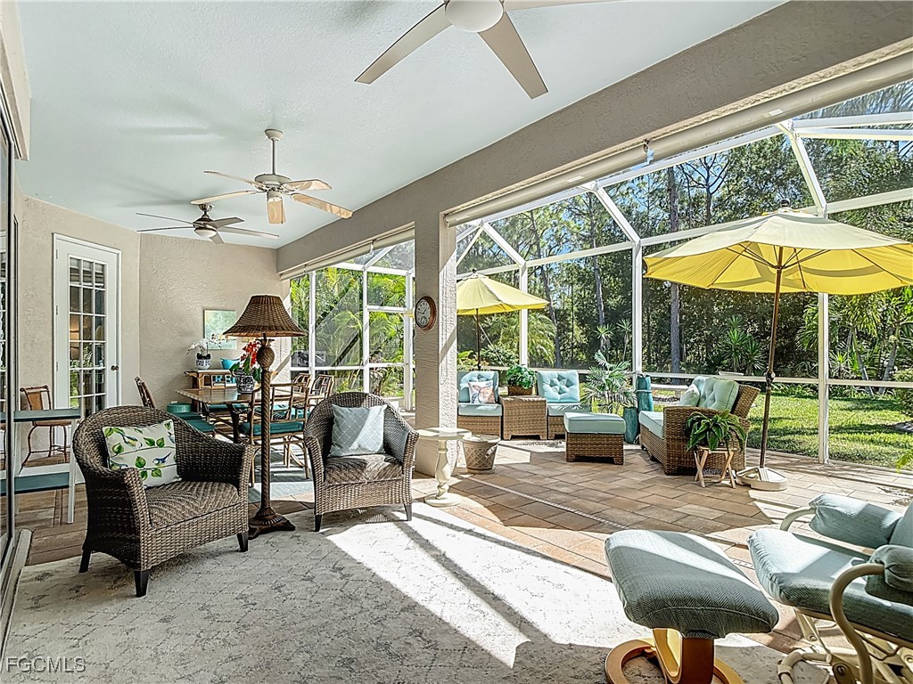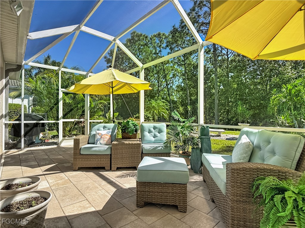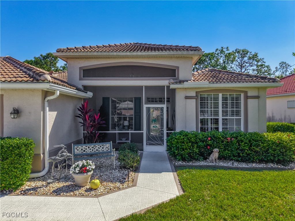 Step outside to your private outdoor oasis—a covered lanai for shade, extended screened area for entertaining, and a lush backyard with serene preserve views offering privacy and tranquility. The screened front loggia creates a welcoming entrance and allows refreshing cross breezes throughout the home.