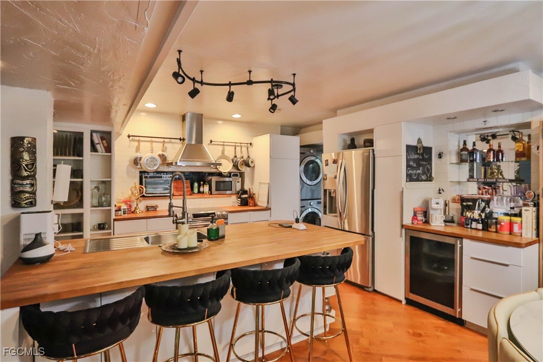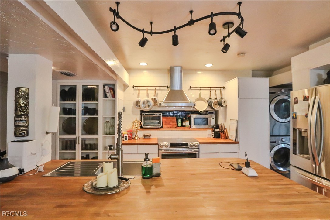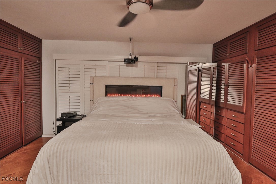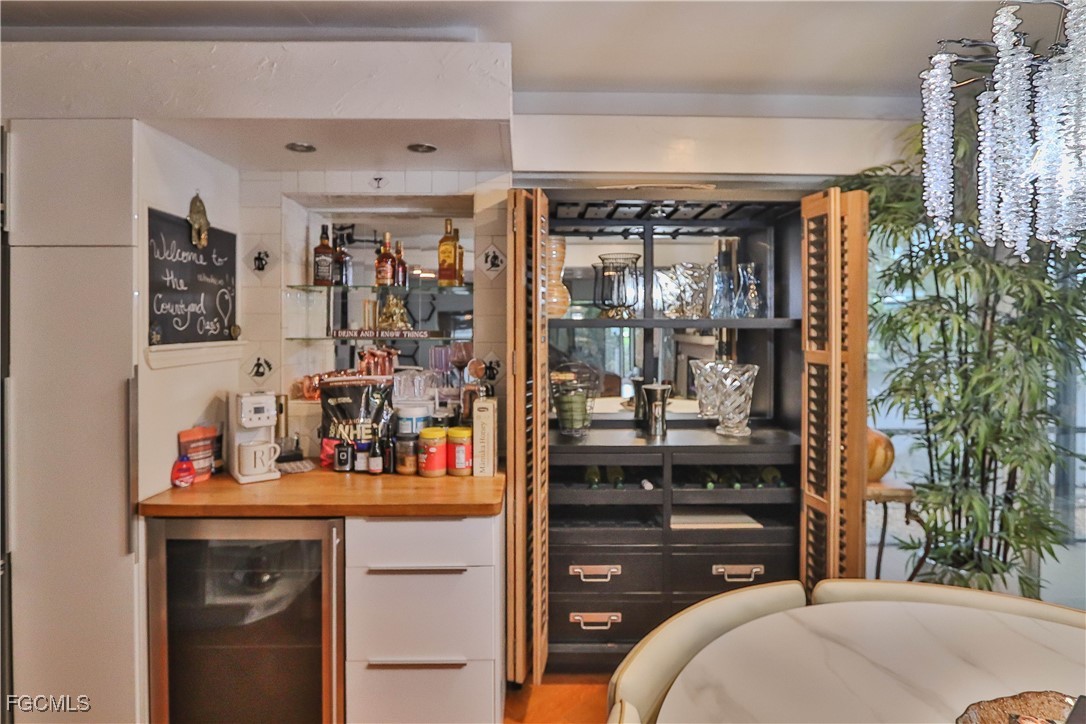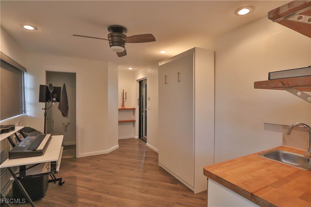 This stunning Mid-Century Modern courtyard-style home, designed by renowned architect Dick Hartmann, is a rare find in the old mature and beautiful McGregor region of Fort Myers. It features two spacious bedrooms with custom cabinetry/storage and en-suite baths, offering comfort and privacy alike. A third guest quarters with a kitchenette and bath provide versatile space for visitors or a home office/man cave! The open floor plan, with glass walls on three sides opening to a private courtyard, creates an inviting indoor-outdoor living experience ideal for relaxation and entertaining in Florida's beautiful weather. Modern amenities include a gourmet kitchen with stainless appliances, butcher block counters, tile backsplash and a small bar area. Carrying hardwood floors throughout most of the space with updated all tile bathrooms, a new roof (2020), and a new hot water heater, new hurricane shutters, beautiful custom built koi pond, hammock swing, water fountain features and more. Located in a friendly community just a walk from the Fort Myers Country Club and Golf Course, this property seamlessly blends historic Mid-Century design with contemporary comfort, offering a serene outdoor oasis and a unique lifestyle.
