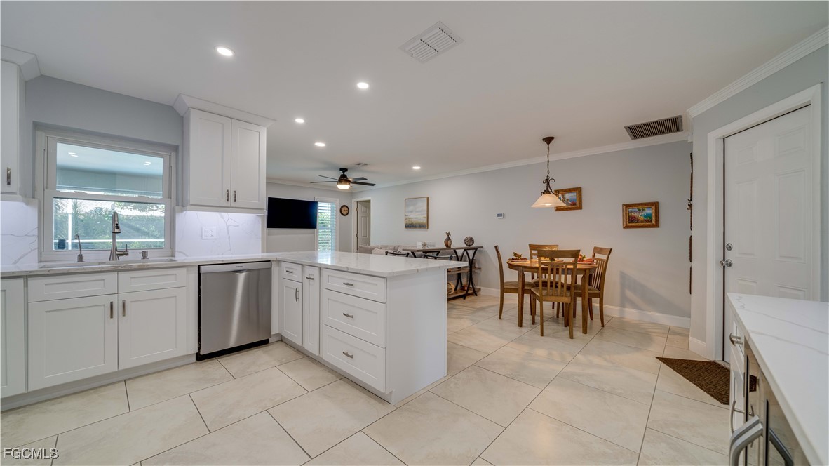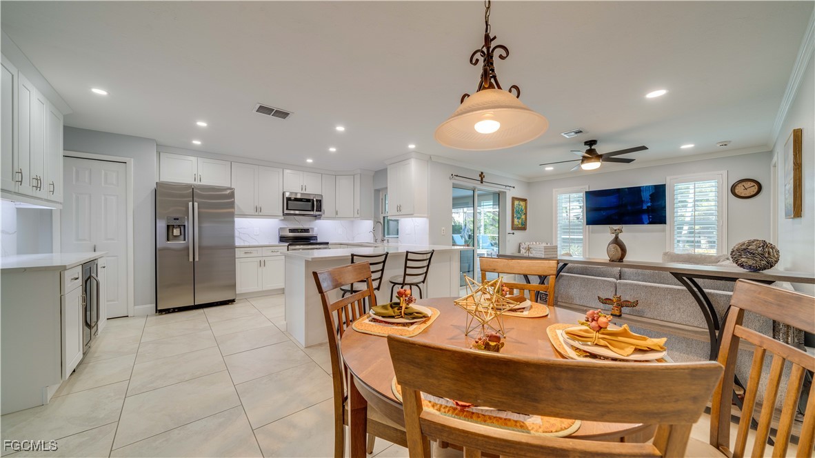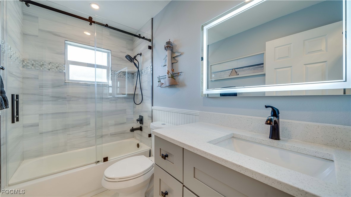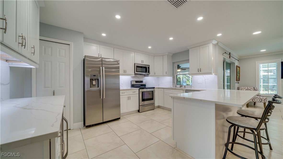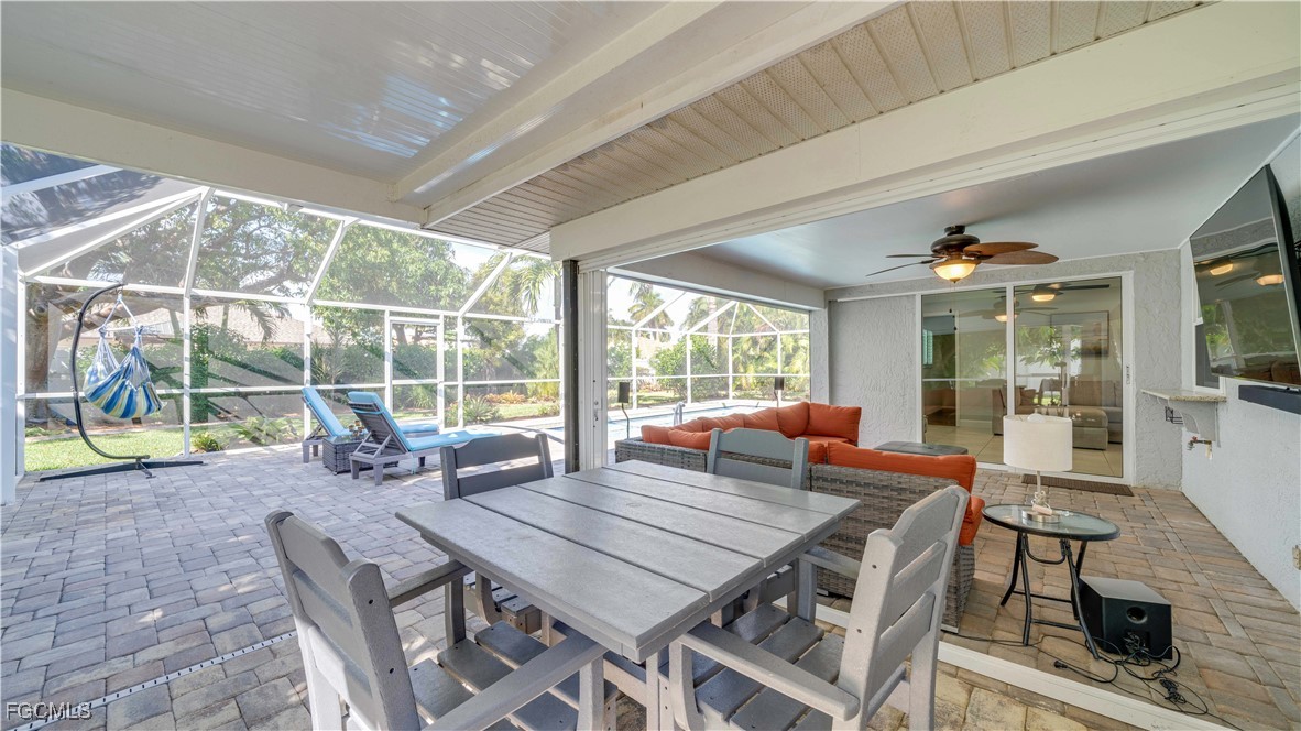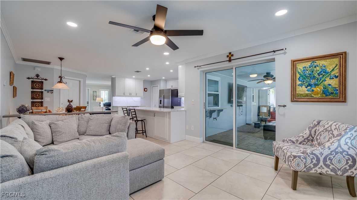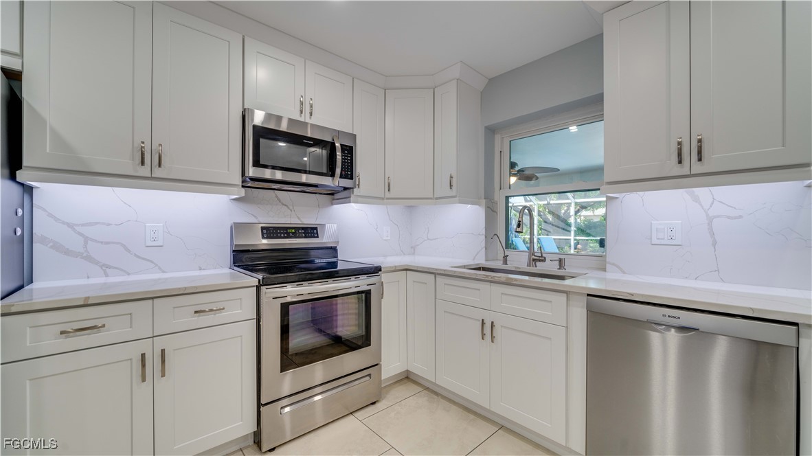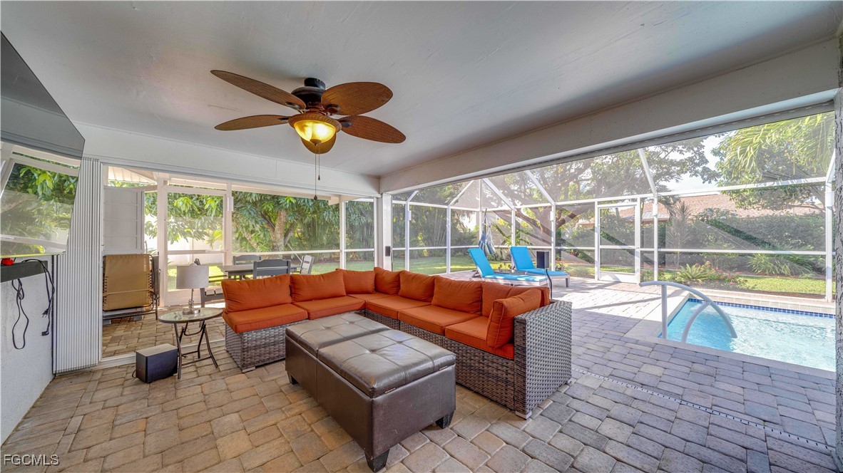 Welcome Home! This is the one you’ve been waiting for! This beautifully remodeled 3-bedroom, 2-bath home on a spacious, triple lot is truly move-in ready. The modern kitchen features soft-close cabinetry, quartz countertops, stainless steel appliances (including a wine fridge), and a convenient pass-through to the lanai. Elegant 24-inch tile flooring flows throughout the main living areas, while plantation shutters and a split floor plan add both style and privacy. Enjoy peace of mind with Impact windows, an Impact-rated front door, and a fully fenced yard. This home has not sustained any damage or flooding from Ian or other storms. Step outside to your private oasis, the pool and lanai area have undergone a 32K renovation. Including a resurfaced pool, new Salt Gen, new hand railing, expanded lanai, sealed pavers, surround sound in the seating area and remote-controlled color-changing lights. The detached 160 sq. ft. shed is air-conditioned, powered, and perfect for a gym, studio, or workspace. It even has its own storm shutters. Surrounded by mature landscaping, colorful flowers, concrete curbing and a fruit-bearing Valencia mango tree, this property combines comfort, security, and Florida charm — all with assessments paid in full! Sellers are offering a One-year Home Warranty thru American Home Sheild. There is a transferable flood policy currently at $1,074. This home offers everything, don't miss out!