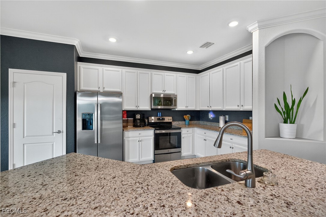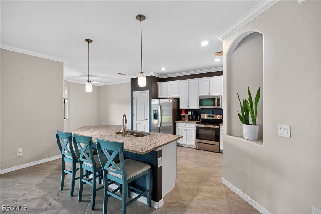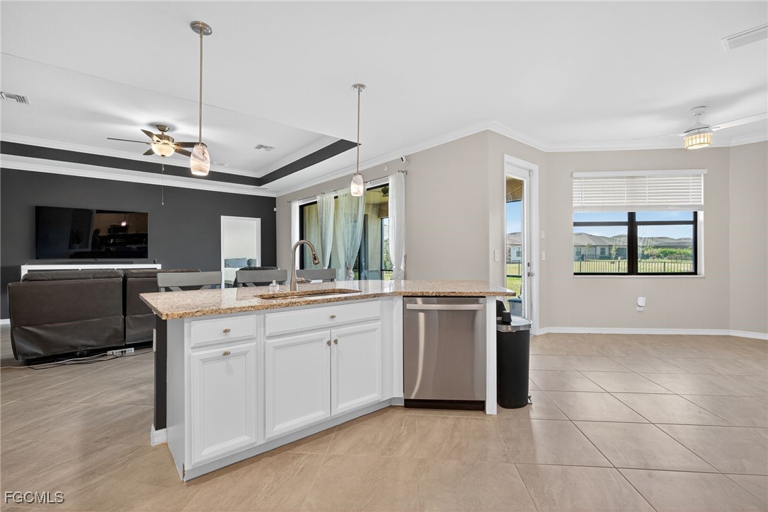 Welcome to your dream home in the highly sought-after Portico community of Fort Myers! This stunning 4-bedroom, 2-bathroom single-family residence with a spacious 3-car garage combines modern comfort, elegant design, and the best of Florida living. Step inside to discover an inviting open-concept floor plan with tile and carpet flooring throughout. The chef’s kitchen features granite countertops, a stylish backsplash, stainless steel appliances, and ample cabinetry—perfect for cooking and entertaining. The living area flows seamlessly to the screened lanai, where you’ll enjoy peaceful long-lake views and relaxing evenings outdoors.