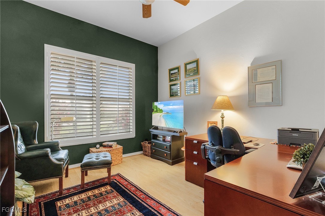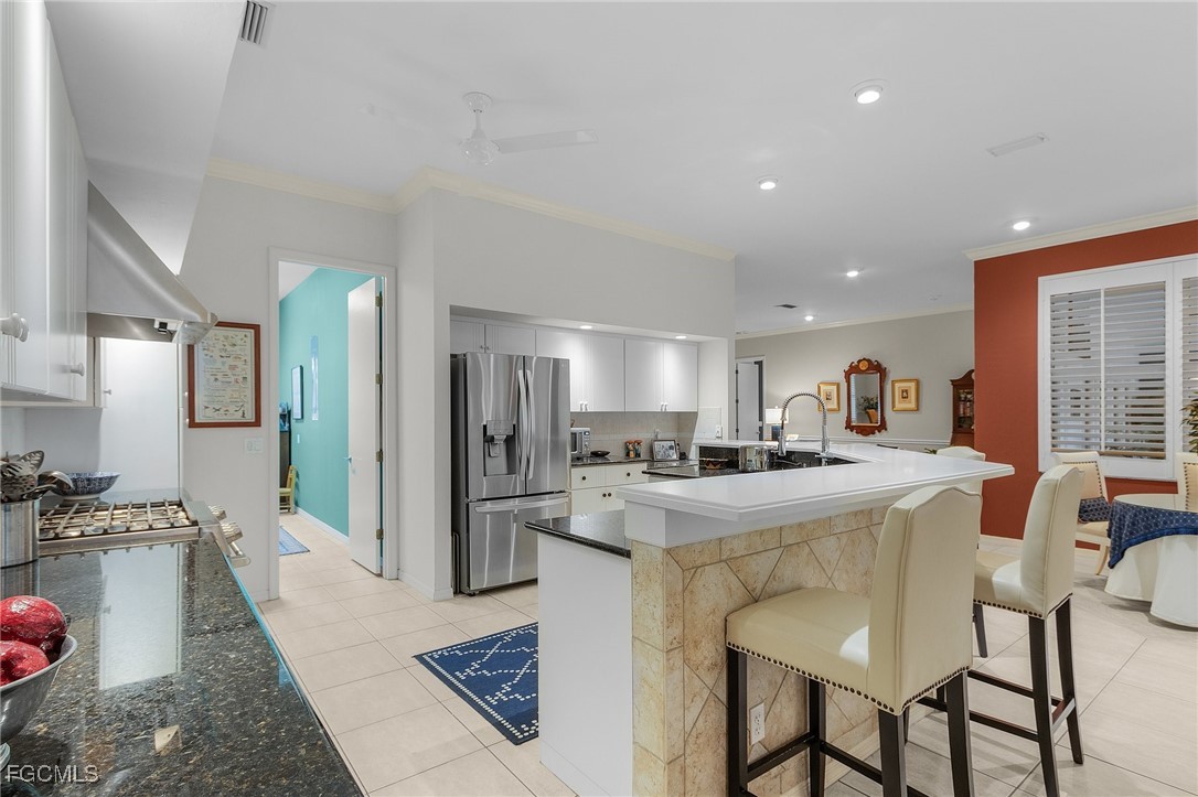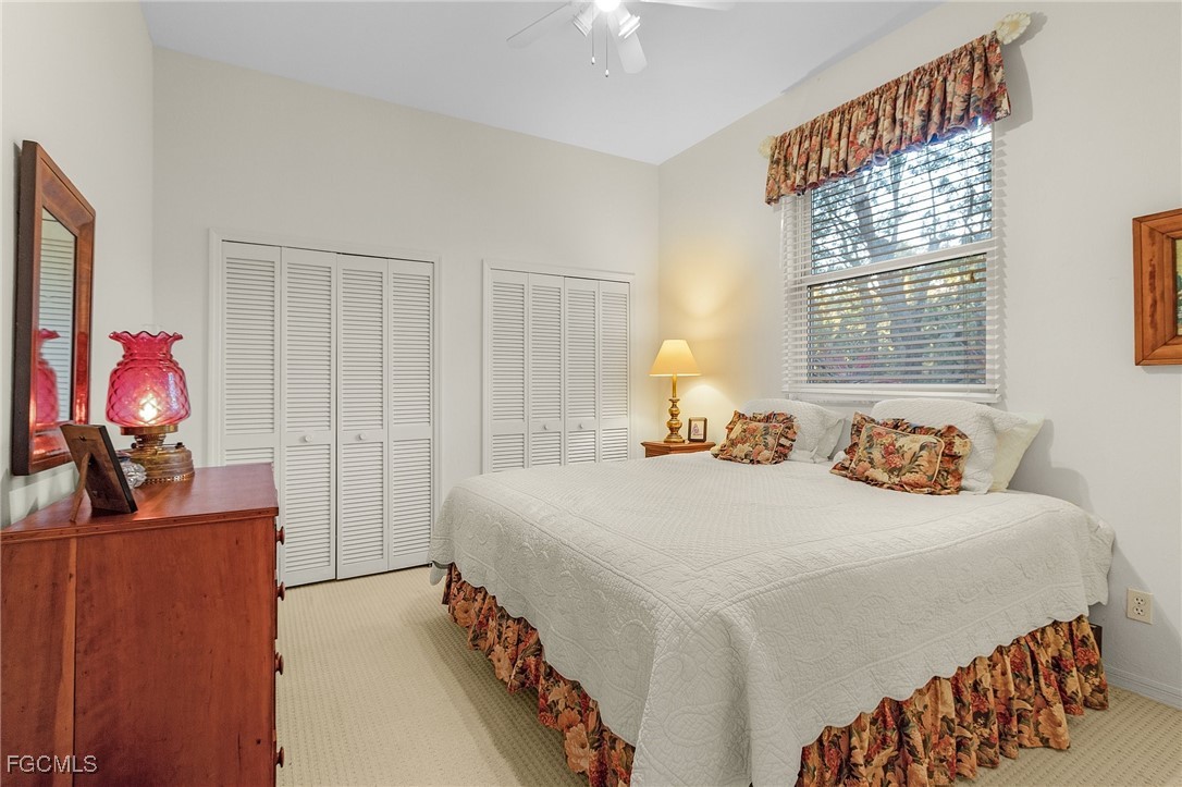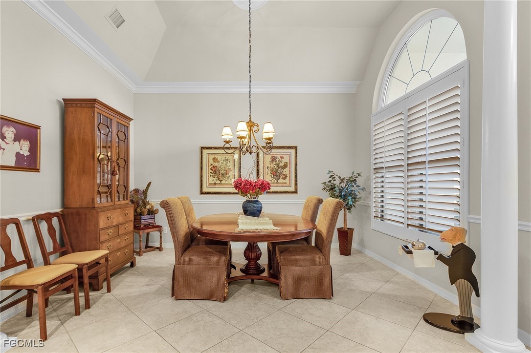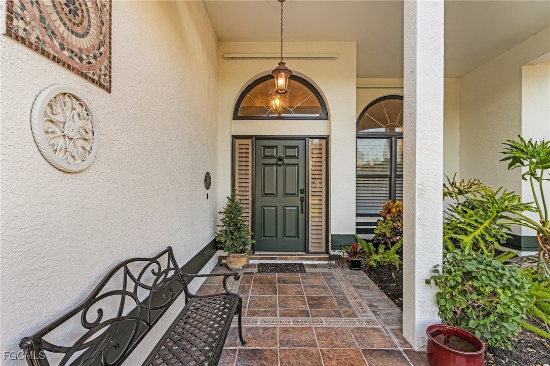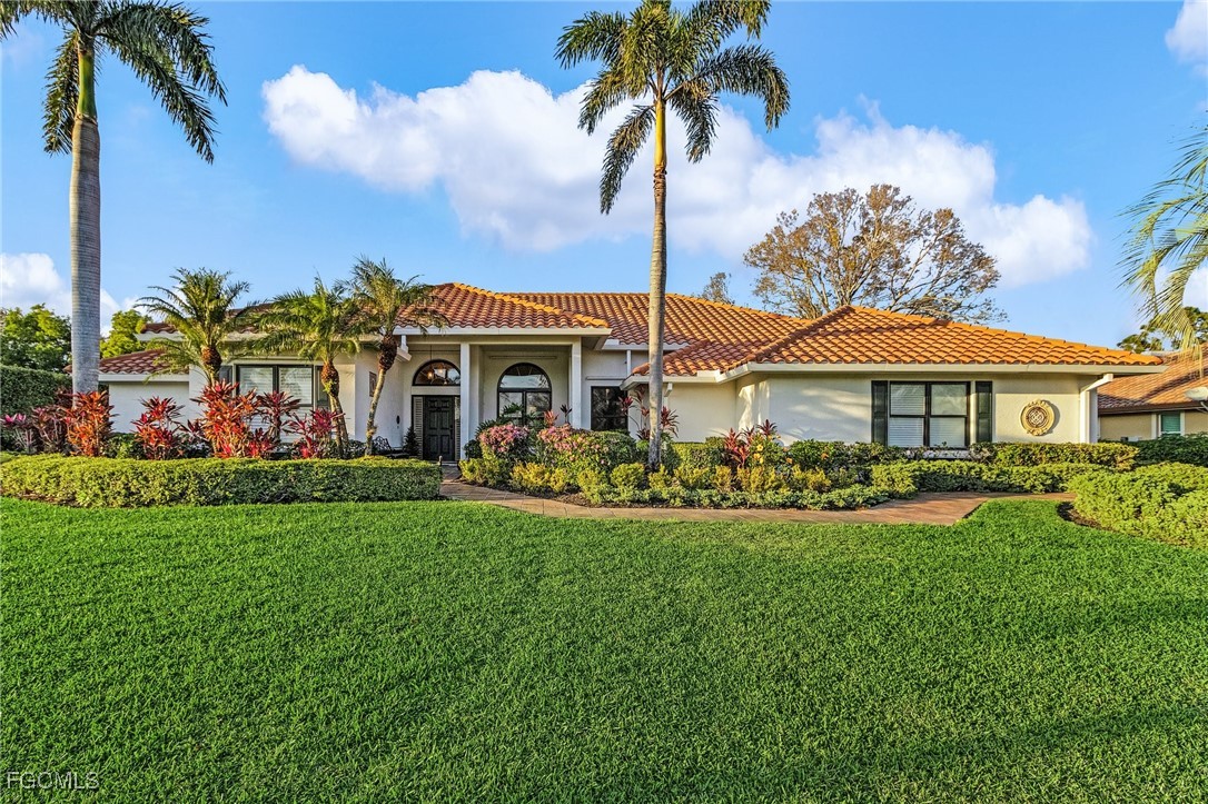 Welcome to your dream home in the prestigious Fiddlesticks Country Club. This stunning 3-bedroom plus den, 3-bathroom residence blends luxury and comfort. It’s ideal for both relaxation and entertaining. Soaring volume and vaulted ceilings create an airy feel inside. Tile floors flow through all living areas. The updated kitchen boasts white cabinets, granite countertops, and stainless steel appliances. A 6-burner gas range with double oven delights any home chef. Plantation shutters add elegance to the windows. The generous master suite offers space for an office or sitting area, plus lanai access. Its updated bathroom includes a walk-in shower, soaking tub, dual sinks, and a walk-in closet. Two spacious guest bedrooms impress, one with an ensuite bathroom. Outside, a paver lanai features a pool, hot tub, and lush landscaping for privacy. Open it up for a serene lake view. Enjoy the wood-burning fireplace indoors, with storm shutters for peace of mind. A spacious side-load 3-car garage and paver driveway enhance the exceptional curb appeal, accented by beautifully landscaped grounds and majestic palm trees with northern exposure. Located in Fiddlesticks Country Club, this home offers an award-winning golf community lifestyle. Enjoy two championship golf courses and 8 Har-Tru clay tennis courts. Relax at the resort-style zero-entry pool with cabana bar and poolside dining. The clubhouse provides formal and casual dining, plus vibrant social events like live music nights. No CDD fee sweetens the deal. This property blends luxury, leisure, and an active lifestyle. Schedule your private tour today!