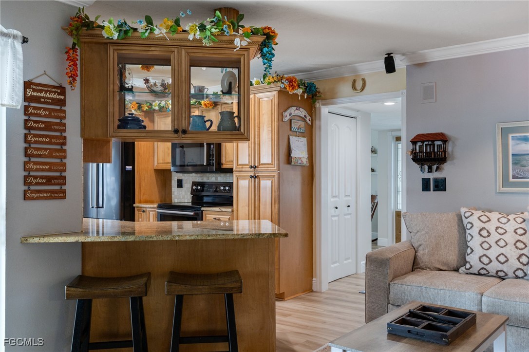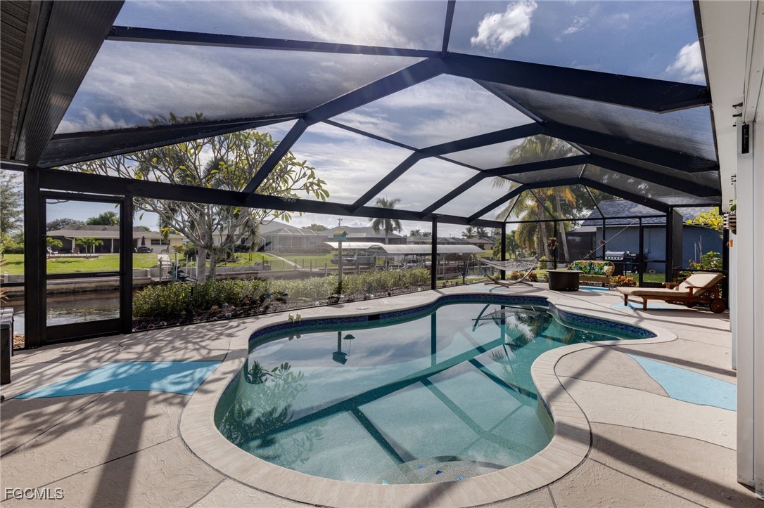 Gulf Access Updated Home with Saltwater Pool & Boat Lift, new boat lift cover. Experience the ultimate Florida lifestyle in this beautifully updated Gulf-access home! Located just 10 minutes from open water, this property offers everything for boating and outdoor living enthusiasts. Features Include: Gulf access with private boat dock with water and electric and 10-ton boat lift, new sea wall, sparkling saltwater pool ( resurfaced with tile with above-ground hot tub, Extended screened lanai and pool deck — perfect for entertaining, new pool heater ( 2021 ),Solar panels for energy efficiency, Extra-large lot offering privacy and space, Hurricane 3-rated, wind-resistant windows with roll down shutters, Updated bathrooms and new flooring throughout, crown molding throughout, granite countertops in kitchen and bathrooms, new sprinkler system, landscaped yard with rubber mulch, generator plug in place, screen on garage door, new roof, AC, hot water heater, Enjoy the best of both comfort and coastal living — just minutes from the open Gulf!