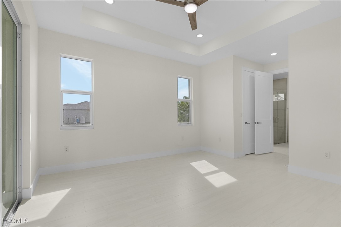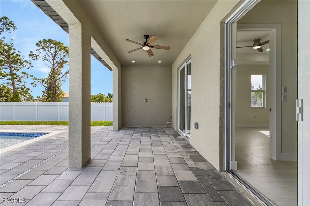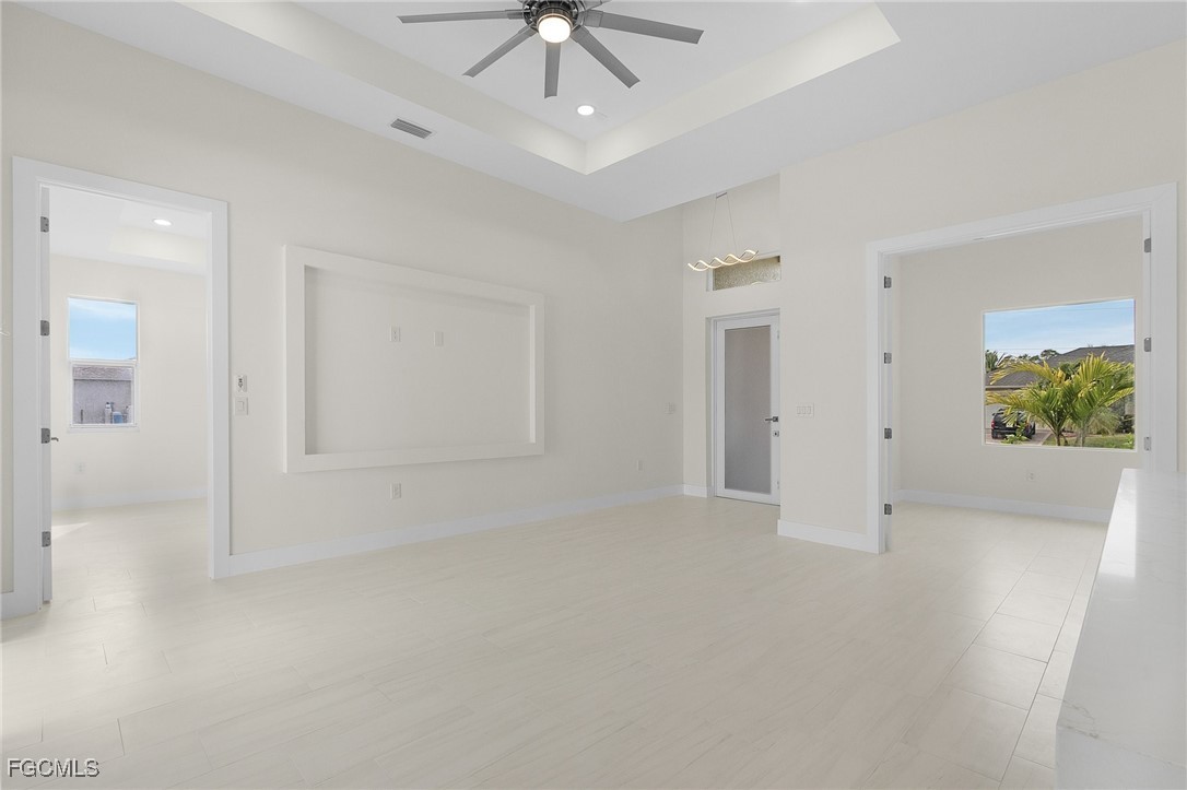 Welcome to the perfect blend of luxury, comfort, and location. Featuring 12 foot tray ceilings and 3-bedrooms, 2-bathrooms with a den, Gourmet Kitchen with quartz countertops, stainless steel appliances, and modern upgraded lighting. Spacious Master Bedroom featuring two walk-in closets and a spa-style bathroom with dual sinks, a soaking tub, and separate shower. Generously Sized Guest Bedrooms with plenty of closet space. Hurricane-impact windows & doors for safety, efficiency, and peace of mind. Outside, your private oasis awaits. Enjoy a sparkling salt water pool surrounded by pavers, a fully fenced yard, and a large covered patio perfect for entertaining, or relaxing in the Florida sunshine. The spacious two-car garage and extended driveway provide ample parking and convenience. Homes like this don’t last long—schedule your private showing today before it’s gone!
