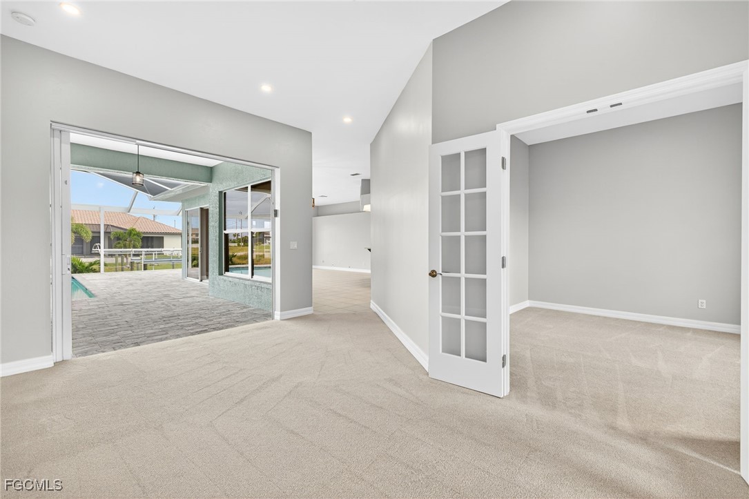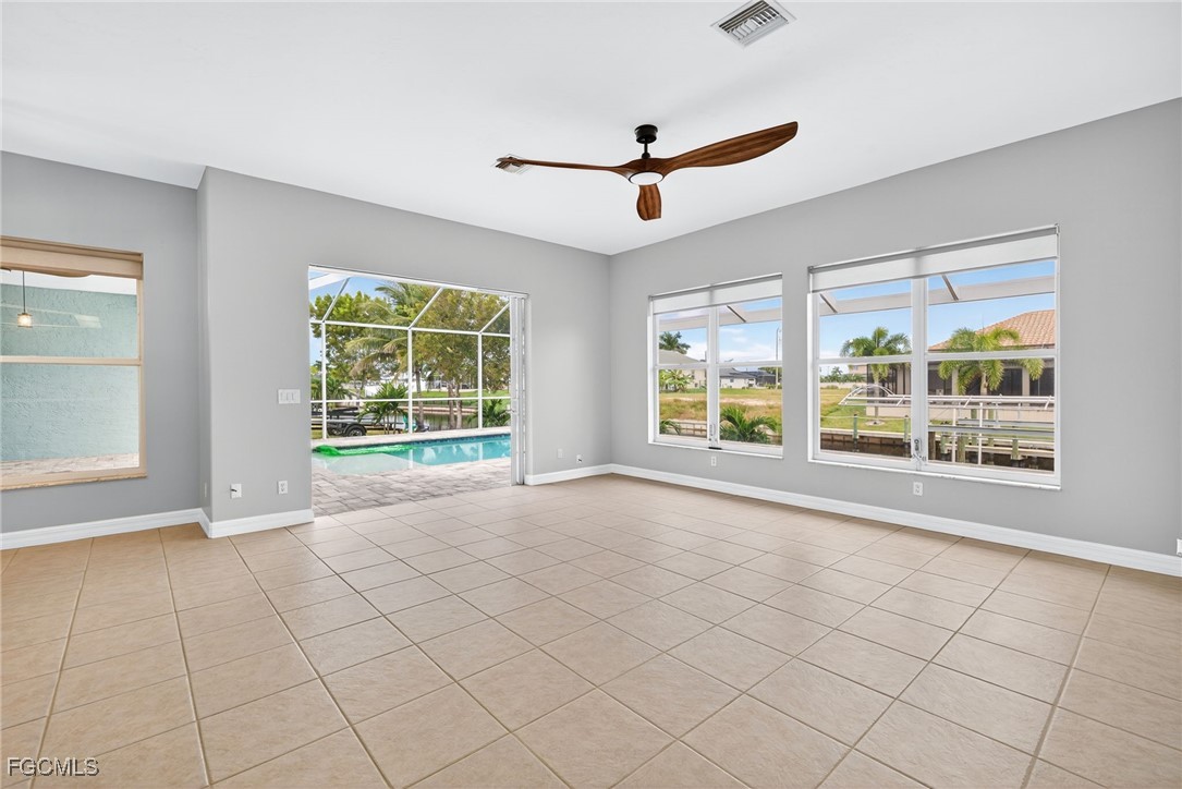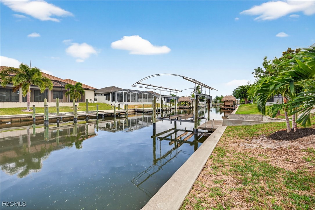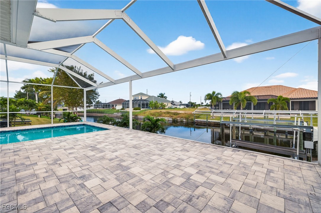 Welcome to this spacious 2389 sq ft, three-bedroom + den (used as a fourth bedroom), three full bath, gulf-access home designed for comfort, function, and Florida living at its best. The split floor plan offers privacy and flexibility, featuring two ensuite bedrooms—perfect for guests or a multigenerational household. The primary suite includes a large walk-in closet, double vanity, private water closet, jetted tub, and walk-in shower. The open-concept living area features tall pocketing sliding glass doors in the entryway, family room, and primary bedroom—seamlessly connecting indoor and outdoor spaces. Large windows frame the tranquil canal views, bringing in abundant natural light. The oversized walk-in pantry, laundry room with wash tub and folding/hanging area, and extra-large closets provide exceptional storage. Outside, enjoy a brand-new 14' x 24' heated/cooled saltwater pool, expansive lanai with two picture windows, and a reinforced retaining wall—perfect for entertaining or relaxing while watching the fish jump or boats pass by. The extra-large two-car garage with more than 500 sq ft, features a 7.5-foot door for small boats or trailers and an 11' x 17' storage room/man cave. Additional features include LED lighting throughout, maintenance-free landscaping with automatic sprinklers, pex plumbing with a Manibloc home run plumbing system, new electric breaker panel, generator hookup, and a 50 AMP RV hookup on the garage side of the house. The home has been lightly lived in, well cared for, and offers the ideal Florida lifestyle with low carrying costs. Sellers are also the listing agents.
