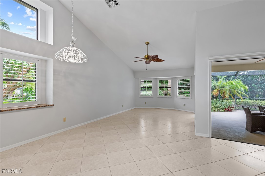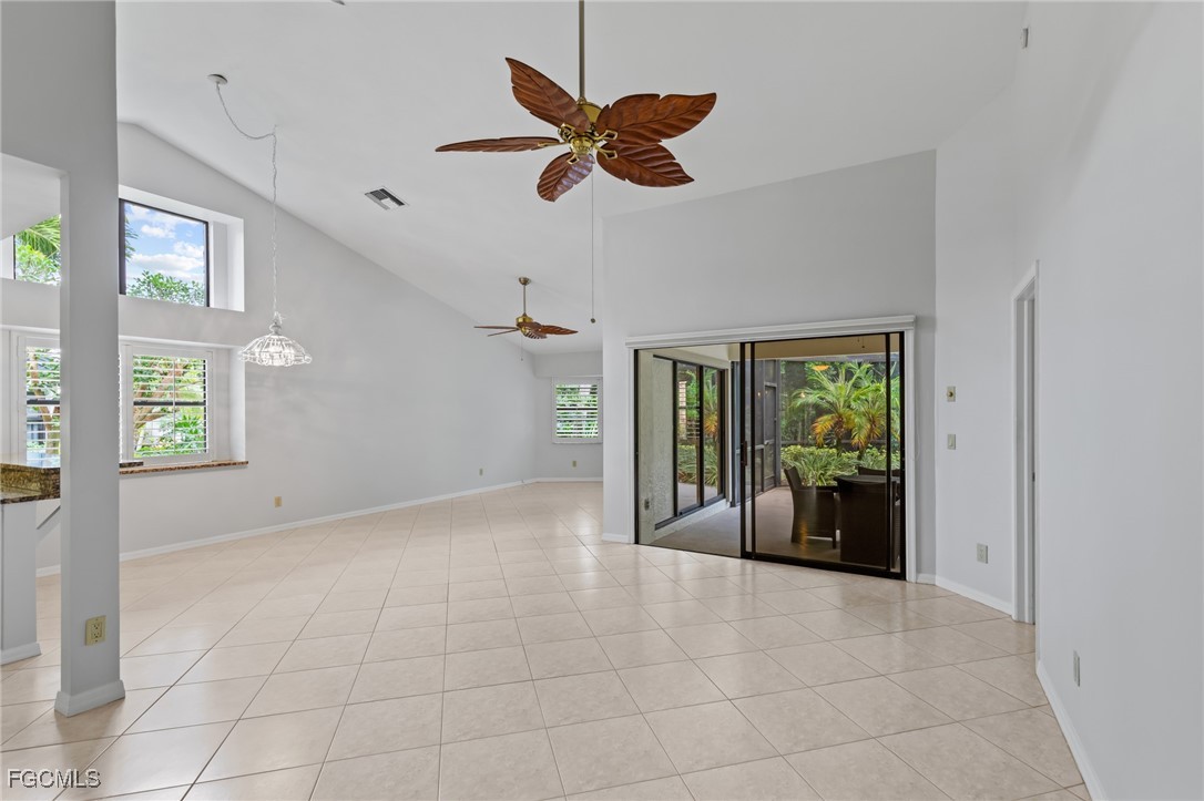 This 3-bedroom, 2-bathroom home in Bonita Bay’s Burning Tree neighborhood features one of the largest floorplans in the community, offering plenty of flexibility and space for family and guests. Light-filled rooms, soaring ceilings, and an open-concept living area create an inviting and airy atmosphere. The spacious kitchen flows seamlessly into the living and dining areas, making daily living and entertaining effortless. It offers ample storage and a breakfast bar ideal for casual meals or gatherings.