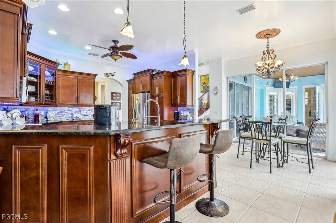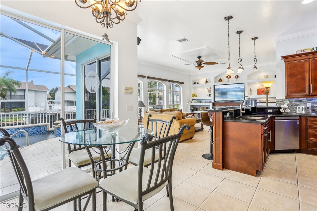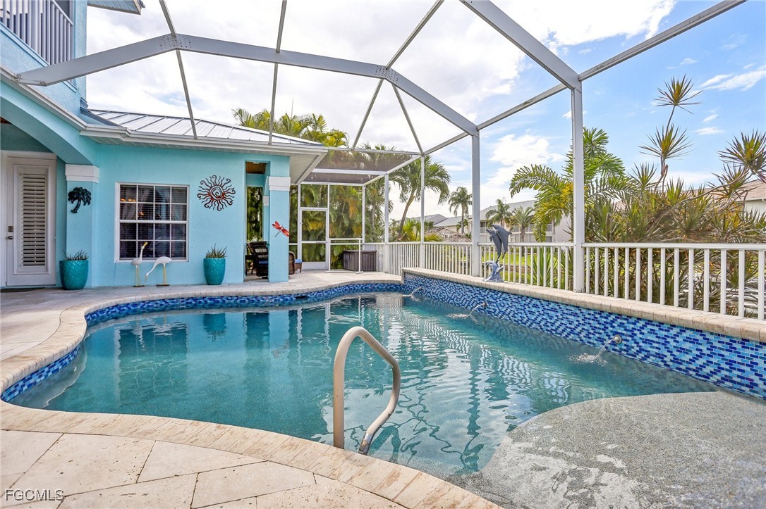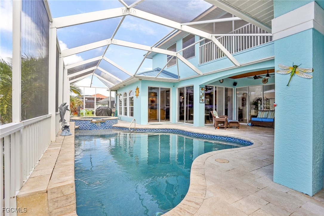 Rare find in Cape Coral ! This Coastal Chic Palatial Custom Built , Fully Furnished, Gulf Access Home boasts over 3,200 sq ft of luxury living ! Southern exposure, custom heated pool with granite spill over spa & travertine pool deck/lanai make this resort-like 2 story gem a must see! Large composite dock with captain's walk and 10,000 lb boat lift with a 25 minute boat ride to the river make this one of the closest canal systems to beaches in the city ! 4 Bedroom plus large office, 4 bath, great room, formal dining room, separate TV room, upstairs games room, 2nd story balcony all provide more room than you'll ever need ! Walk into the grand foyer and marvel at the soaring 20 ft ceilings and palatial staircase that feels more like a luxury hotel than a home ! This home has a huge master bedroom and bath with dual showers, dual vanities, 2 walk in closets & double French doors to lanai. The large custom built kitchen with dual ovens, granite countertops, stainless appliances, 42 inch custom cupboards with dual pantries is every chef's dream ! There is a private 2nd master Poolside Cabana bedroom off the pool & separate from the house. This room has its own bathroom and sliding doors to private sitting area. Custom crown moldings in every room, custom tile throughout, 8 ft doors, 5 sets of 8 ft sliding doors, custom desk in office, real hardwood in upstairs bonus room! Almost everything is new too ! New roof, newer pool equipment and pool refinish, newer dual AC units, newer appliances and freshly painted inside & out! No flooding EVER occurred in this home & minimal damage from hurricane. Get your checklist out & check off ALL the boxes on this rare gem in highly desirous Southwest Cape Coral !