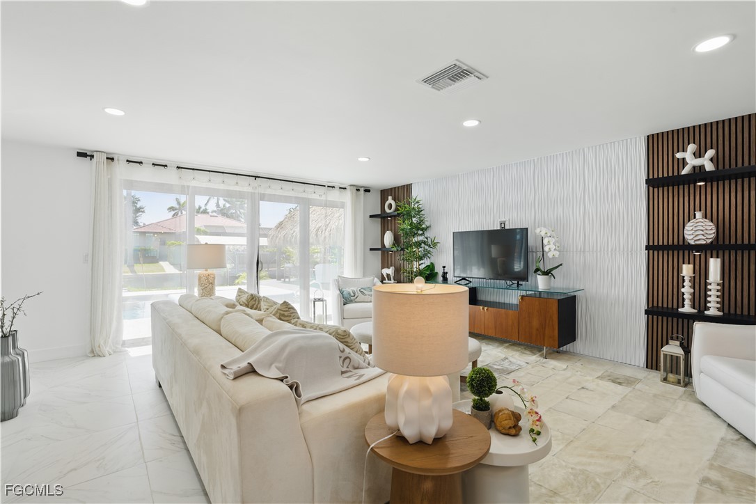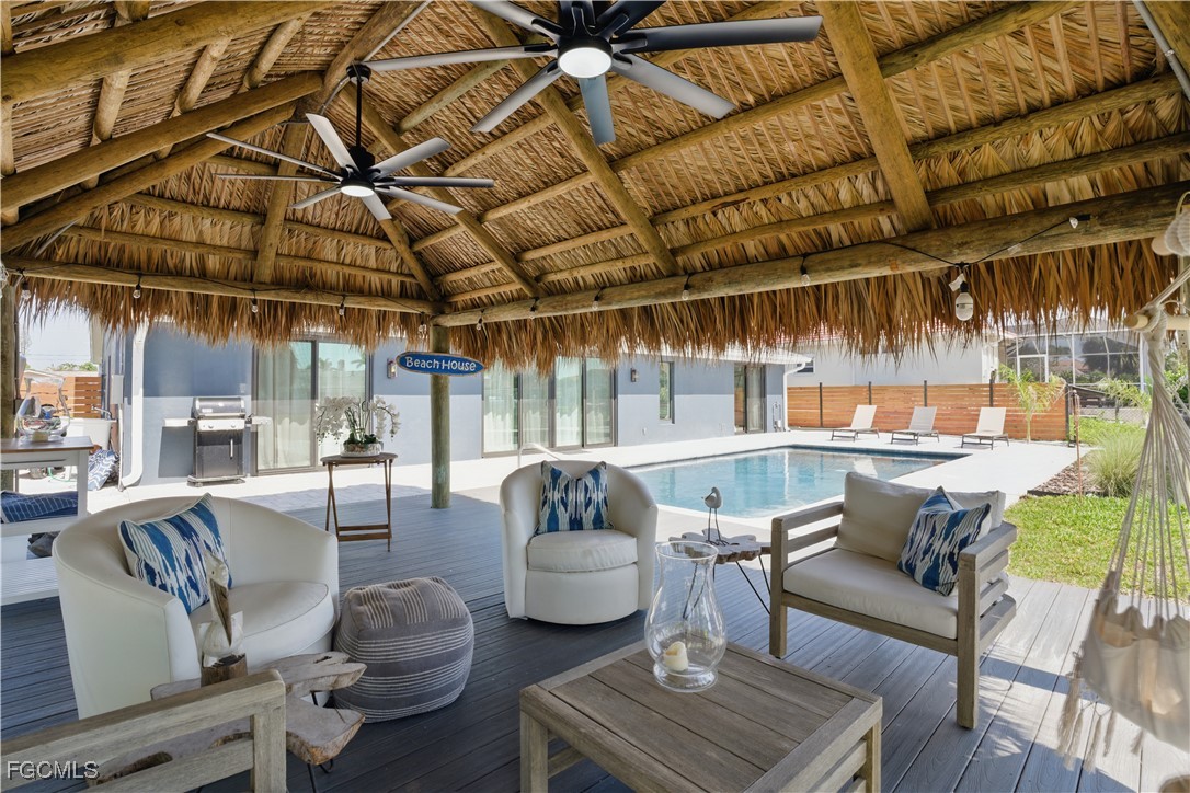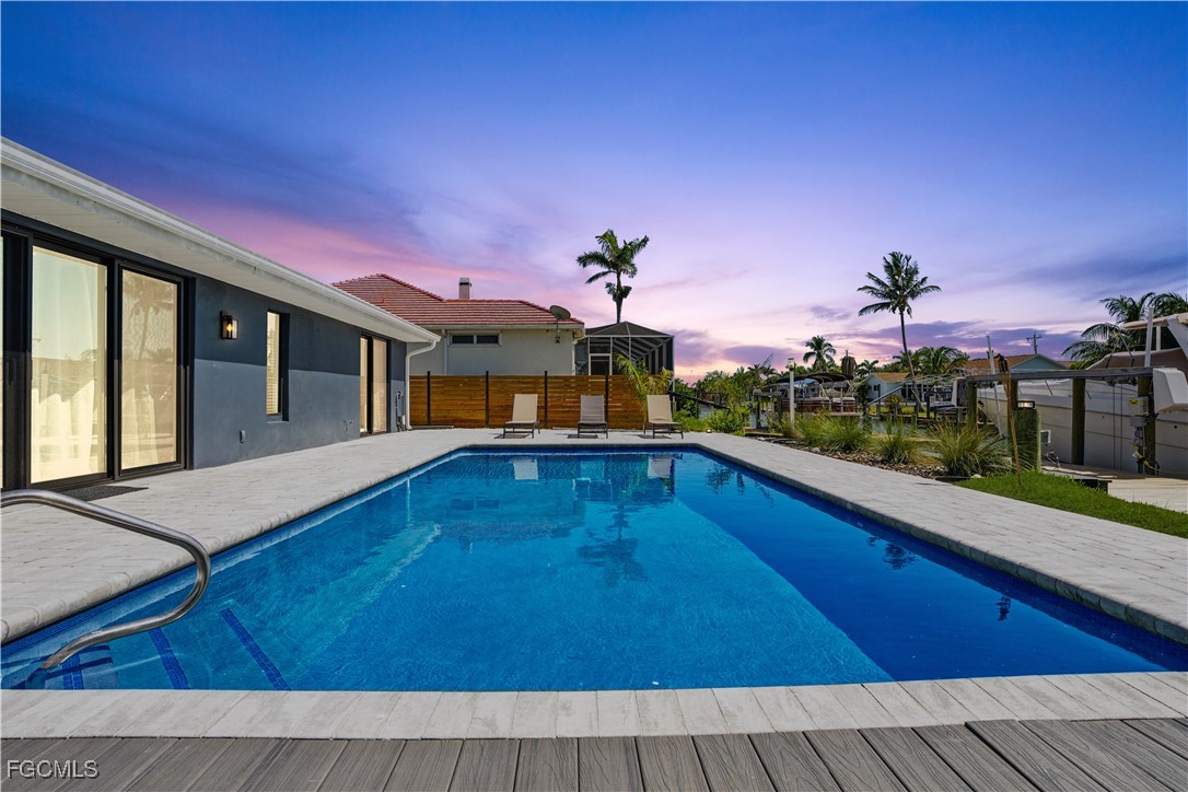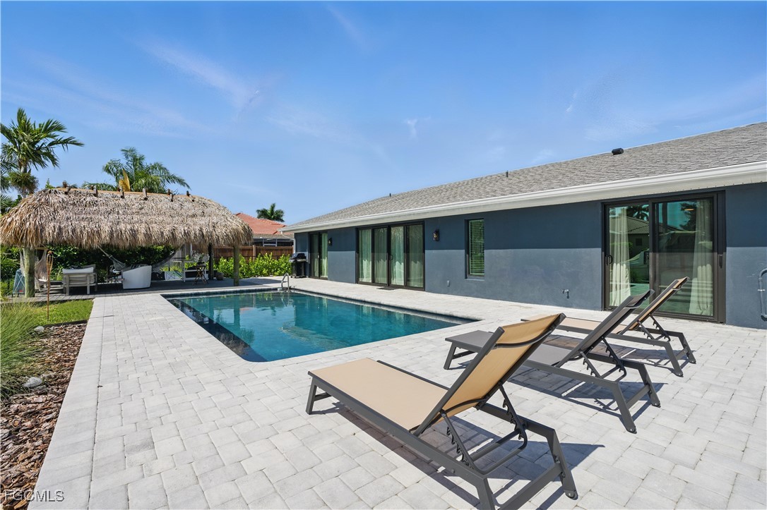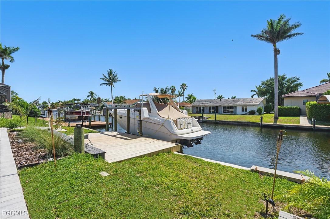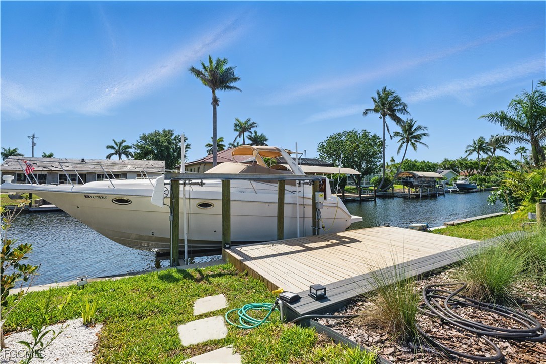 Stunning Waterfront Paradise with Sailboat Access & 30,000 lb Boat Lift! Located near the new Bimini Bay and Cape Coral Bubbling Downtown Area you can experience luxurious coastal living in this completely renovated 3-bedroom, 3-bath home featuring a versatile office space and an entertainer’s dream backyard. Enjoy less than 10-minute direct access to the river—no bridges, perfect for sailboats and large vessels. Every detail has been updated to perfection: brand-new roof, plumbing, electrical, HVAC, appliances, pool deck, and sprinkler system. Elegant large-format porcelain tile and engineered hardwood floors flow throughout, complemented by IMPACT WINDOWS AND DOORS and high-end finishes that define modern sophistication, and don't forget the chef’s kitchen with Moen touchless faucet and double fridges! Step outside to your private tropical oasis featuring a sparkling resurfaced pool, Large Tiki hut, and composite deck with a 30,000-pound boat lift. The western sunset exposure creates the perfect backdrop for evening relaxation and waterfront dining. The cabana bath adds convenience for poolside gatherings. This move-in ready home blends coastal charm with modern luxury—ideal for boating enthusiasts and sunset lovers alike. Seller has advised no listing price reductions, however will entertain offers. This property is a MUST SEE in person! 34’ Cruiser Yacht Available for sale.