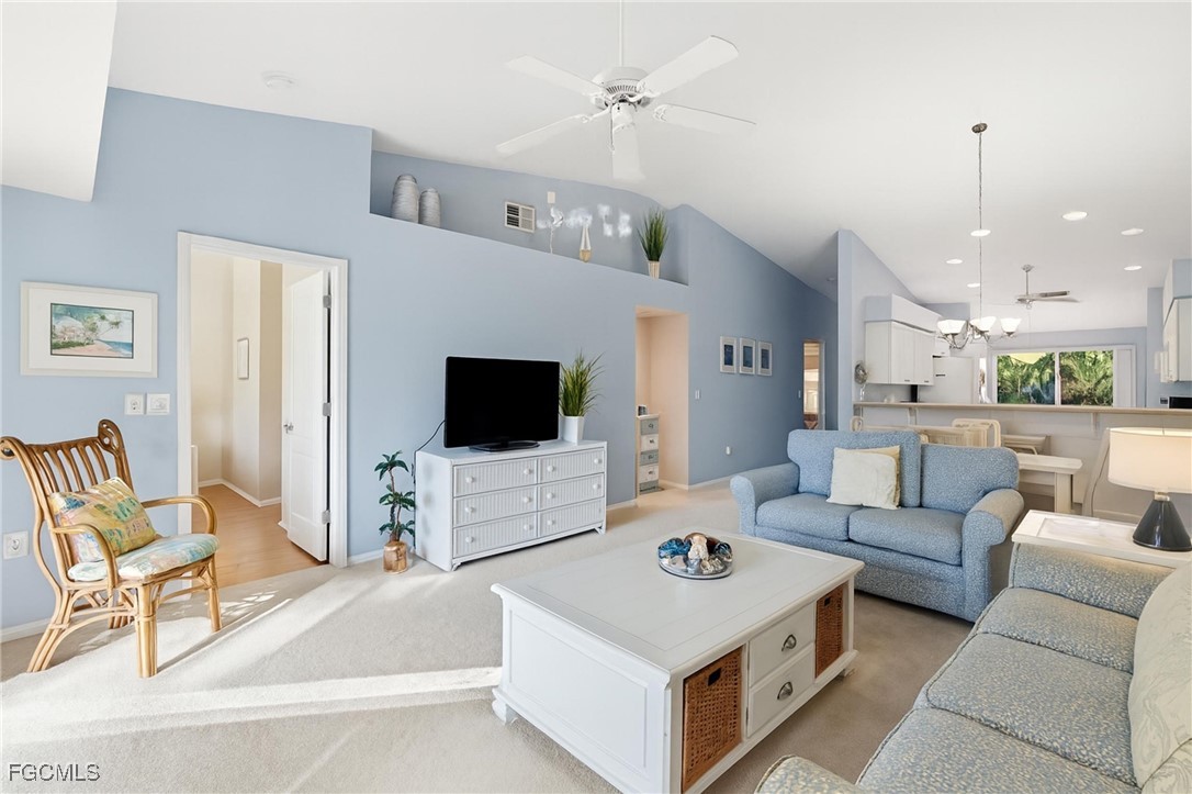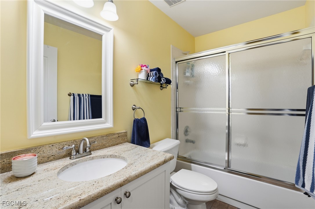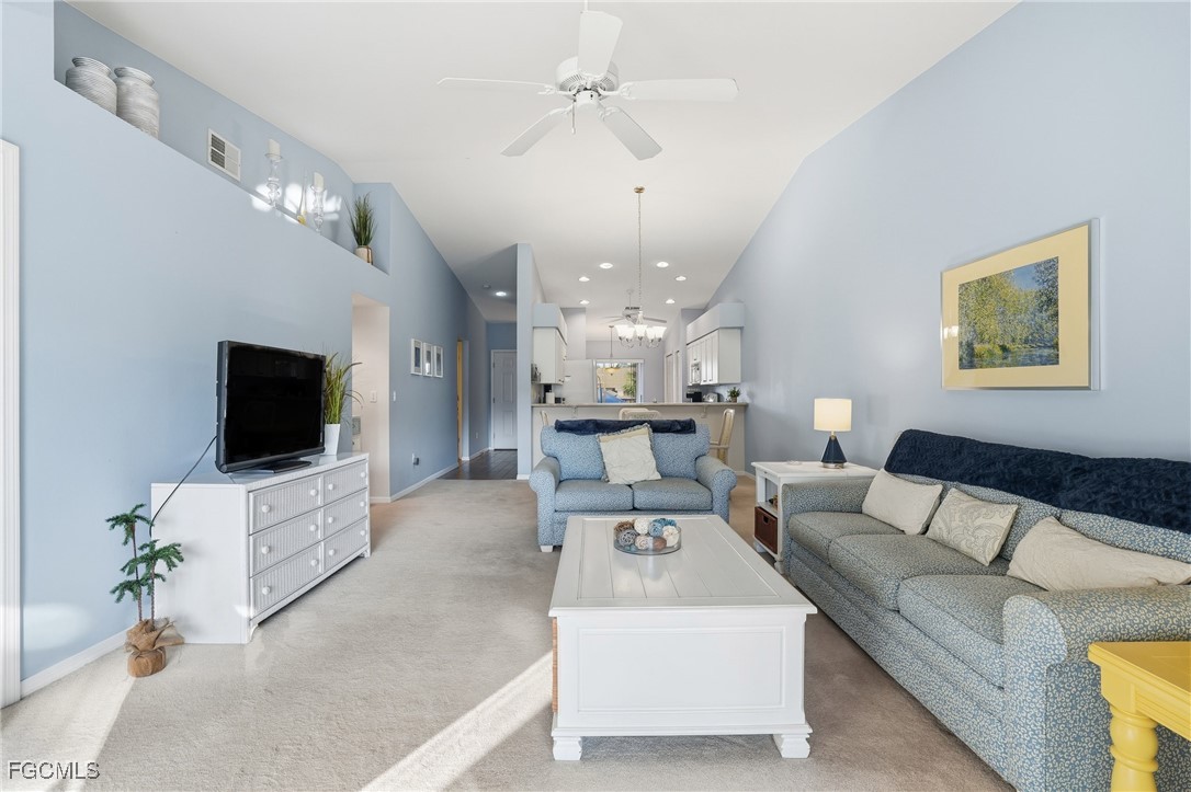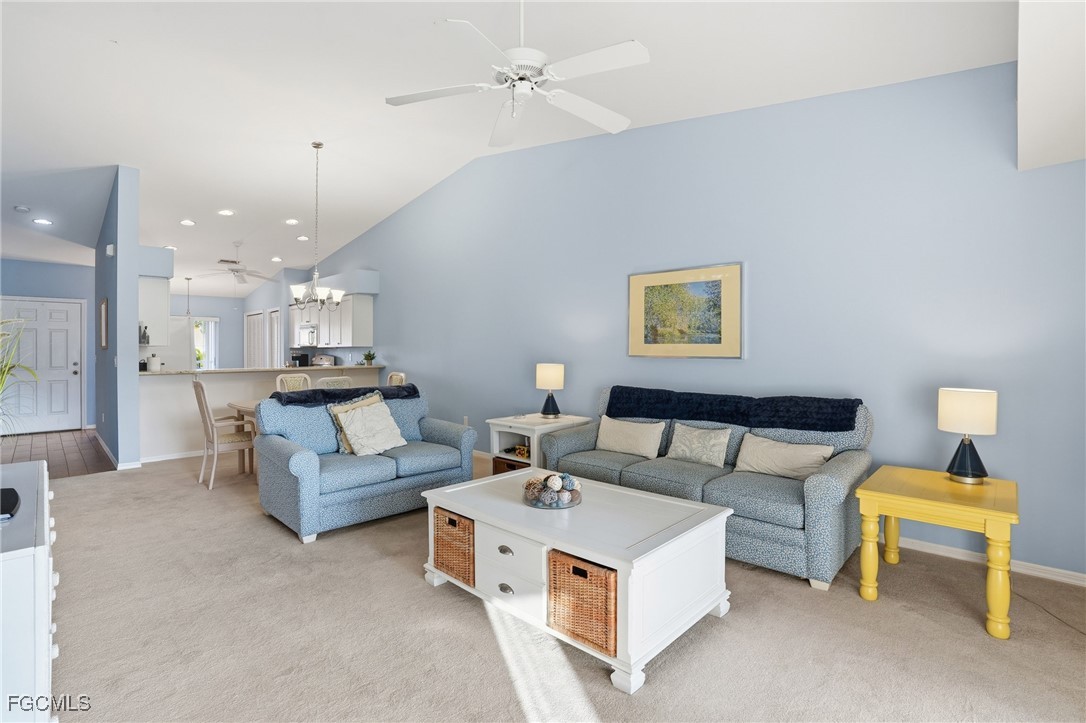 Outstanding Turnkey 2 Bedroom/2 Bath 2nd floor condo in Olde Hickory with the West Lanai enclosed with Acrylic Sliders for 4 season use and many upgrades. The kitchen has granite counters, new cabinets, and flooring. The Guest Bath has also been remodeled. This unit has a separate Laundry Room and Storage Closet. The carpeted Living/Dining Area has cathedral ceilings and is decorated and furnished. Beautiful Tile Floors greet you in the front Lanai, Kitchen, hallways and bathroom. This condo is right across from the Hickory Links Association Pool. The clubhouse Restaurant & Grill/Bar have been expanded and remodeled. The Fitness Center is one of the best Country Club Centers in the area. The Championship 18 holes Golf course is in great condition. Pickle Ball Courts, Tennis, club swimming pool facilities, a driving range and putting green make Olde Hickory one of the top Country Clubs in Southwest Florida. The low density of 561 properties allows owners to play golf many times each week even during the high season of January - March. Olde Hickory is 12 minutes from RSW Airport and 15 minutes from the Gulf Coast.