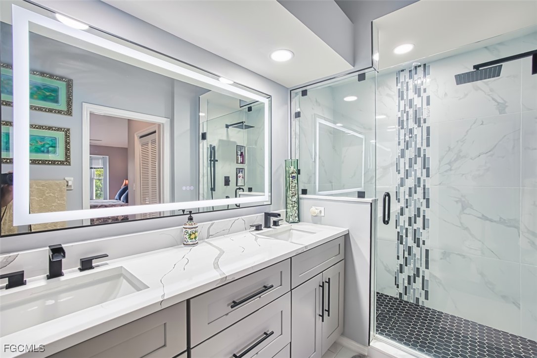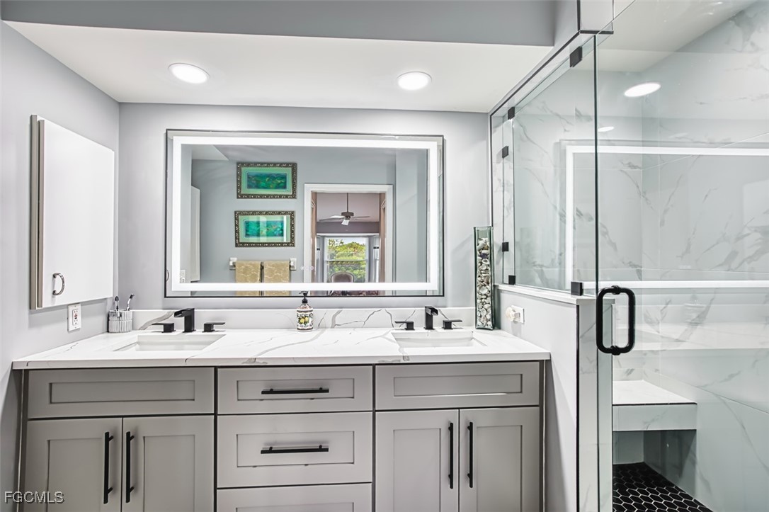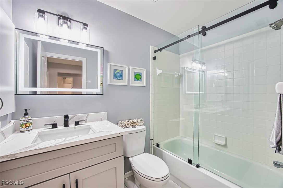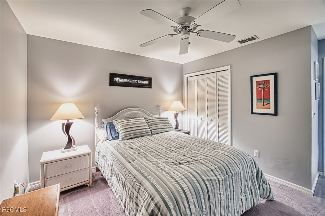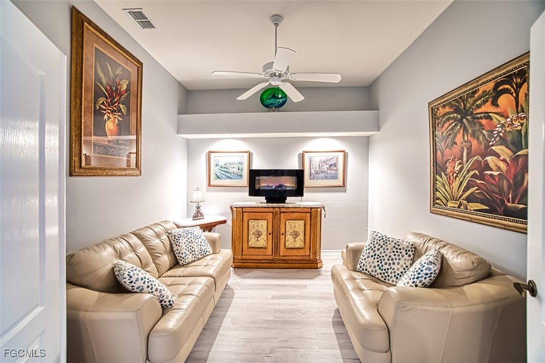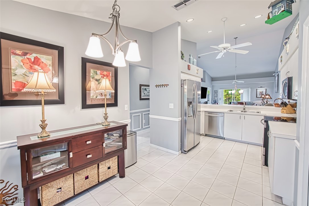Golfers paradise- This stunning 2 bedroom 2 bath plus den condo in the prestigious community of Olde Hickory Golf and Country Club. Large eat in tiled kitchen with stainless steel appliances, recessed lighting, 2 large panties and sliding doors to your front screened lanai. Cathedral ceilings in living room, built in bar and sliding doors to your back lanai with golf course views overlooking the 7th fairway where you can enjoy a beautiful sunset while enjoying some refreshing beverages. Owners suite offers 2 large walk in closets, recently upgraded bathroom with custom tiled walk in shower and doors, raised vanity and LED mirror. Guest bath has been upgraded as well with custom tile, raised vanity and LED mirror. A beautiful den separates the 2 bedrooms giving both you and your guests complete privacy. Den can also be used a 3rd bedroom for those extra guests from the north. New luxury vinyl in most of living space, guest room has carpet. Separate detached 1 car garage. Olde Hickory is a true Country Club lifestyle with Resort style pool, fitness center, Bundled golf, tons of amenities, 22,000 sq ft clubhouse, close to I-75, Red Sox and Minnesota spring training stadiums . Building has new roofs and has been freshly painted. Be sure to tour the amenities !!! Beautiful community you won't be disappointed.
