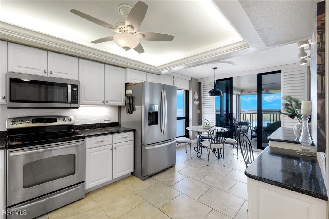 This beautifully and tastefully updated 3 bedroom, corner penthouse showcases sweeping, unobstructed views of Estero Bay and beyond. Elegant plantation shutters frame every window, while the expansive open-air lanai invites you to enjoy coastal breezes and breathtaking sunrises while being entertained by an abundance of SWFL magnificent birds, manatees and dolphins. Inside, each of the three spacious bedrooms offers its own walk-in closet, providing exceptional storage and comfort. Additional conveniences include a private storage closet and electric storm shutters for peace of mind. The unit includes one undercover space and there is ample parking for guests. The complex has recently gone through total exterior renovation to include new roof, exterior painting, lanai rails and repaved parking lot. Just a short walk brings you to the community’s private beach, offering effortless access to the Gulf’s sugar-sand shoreline. Boat slips for sale or lease are within easy walking distance from your unit. The community itself delivers resort-style living at its finest, featuring a beautifully appointed clubhouse with full kitchen, outdoor grill and fishing table station all perfect for entertaining. Residents enjoy an extensive system of safe walking paths, an Olympic-size heated pool, tennis and pickleball courts, a driving cage, putting and chipping greens, and a professionally equipped fitness center. This extremely rare penthouse opportunity comes fully furnished and blends luxury, comfort, and unmatched amenities available in one of the most desirable locations on Estero Bay. The South Island location offers unlimited options for any lifestyle choice. Utilize the free island trolley to the North end for a thriving nightlife atmosphere or take a short drive south to Naples or Bonita Springs for a variety of excellent restaurants and shopping.