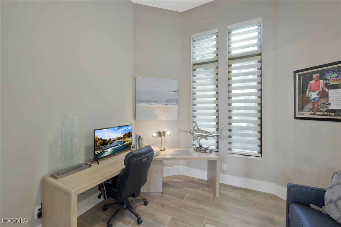 A true luxury rebuild in the exclusive gated community of Cape Harbour, ideally positioned at the end of Round Table Lake with one of the most spectacular wide-water views in Southwest Florida. This direct Gulf-access residence offers no-bridge boating, now enhanced by the widened 100+ ft entrance to the South Spreader, placing you just minutes from the Caloosahatchee River and out to the Gulf. The property includes a newly constructed dock with room for a yacht up to 60 feet. This home was fully redesigned by nationally award-winning architect and rebuilt by a long-standing luxury superintendent for Aubuchon Homes. The property was taken down to the concrete block walls and reconstructed with the level of craftsmanship expected from a model home. Importantly, the home complete interior and exterior renovation with more than $820,000 in improvements. The exterior features an entirely new tile roof, new stucco, soffits, gutters, and trim, along with all new hurricane impact windows and doors providing full 360-degree protection. The stunning outdoor living area includes a new swimming pool, new pool cage, new travertine deck, updated landscaping, irrigation system, exterior lighting, and an electric remote-controlled lanai awning that adds an additional 180 square feet of covered space. The rear of the home also features new remote-control hurricane shutters for enhanced security and storm protection. Inside, the home is essentially new construction, offering all new drywall, insulation, electrical wiring, outlets, switches, plumbing lines, fixtures, tubs, showers, tile flooring, lighting, fans, and high-end appliances in both the interior and exterior kitchens. Custom cabinetry, built-ins, interior doors, closet systems, and trim work have all been newly installed. The home includes a new HVAC system with new ductwork, a full monitored alarm system, upgraded networking and internet, and a complete camera system with remote viewing from all four sides of the home and the dock. Every component of this interior rebuild was executed with luxury, longevity, and design continuity in mind. If the exterior block walls had been removed, this would be considered a brand new 2025 luxury home. No expense was spared throughout the reconstruction, creating a premier waterfront residence in one of Cape Coral’s most desirable gated communities.