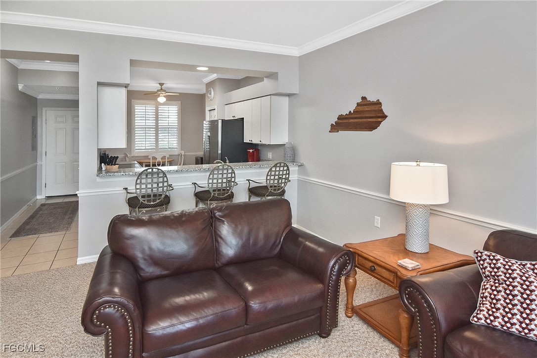 This nice 2 bedroom/ 2 bathroom first floor condo is priced to sell! You will enjoy the lake and golf course view from the lanai and primary bedroom. Kitchen has granite countertops with newer stainless-steel appliances. Crown molding in main living area and plantation shutters are a few highlights. Being offered furnished, it is move in ready! This unit comes with a personal storage unit and carport. AC was replaced in 2020.