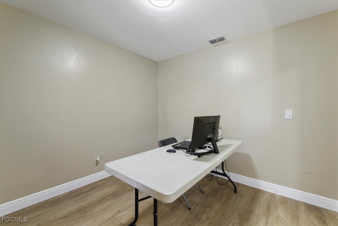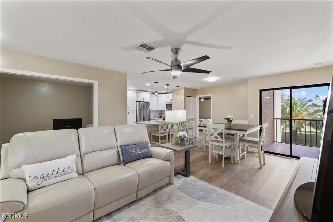 Here's your chance to scoop up the MOST BEAUTIFUL & MODERN condo in Cross Creek Country Club with BUNDLED GOLF! This 2+DEN/2 bath condo was FULLY REMODELED with neutral wood-look WIDE PLANK LVP flowing seamlessly from room to room with high baseboards. The OPENED KITCHEN is a chef and entertainer's dream with white shaker cabinets, STAINLESS STEEL APPLIANCES, a large single basin sink, updated lighting, black accents, GRANITE, and a stunning black stack W/D set. The spacious primary offers a WALK-IN CLOSET, access to the balcony, and a gorgeous bath with a WALK-IN SHOWER. The SECOND SUITE is just as lovely but provides a tub/shower combo, perfect for a soak or bathing little ones and pets. The DEN with pocket doors is a truly FLEXIBLE SPACE that can be used as a guest room, playroom, office, craft room, and more. The LARGE TILED & SCREENED BALCONY is quiet, private, nestled in the canopy of the palms, and offers NE views of lush, green landscape. You can relax and unwind at 1 of 2 community pools or enjoy one of the many sports courts in the community: tennis, pickleball, and bocce! Whether you're a seasoned pro or just starting out, this condo offers the perfect opportunity to perfect your swing and enjoy the great outdoors. With its prime location off Daniel's Pkwy, you'll have easy access to shopping, dining, entertainment, RSW International Airport, 2 Spring Training Stadiums, and the pristine beaches of SWFL. Whether you're looking for a permanent residence, a vacation home, or an investment property, this condo has it all. With its inclusions, amenities, PRIME LOCATION, LOW TAXES and LOW HOA FEES, this home qualifies as a "BEST VALUE BUY," and you'll have everything you need to live the Florida lifestyle to the fullest!