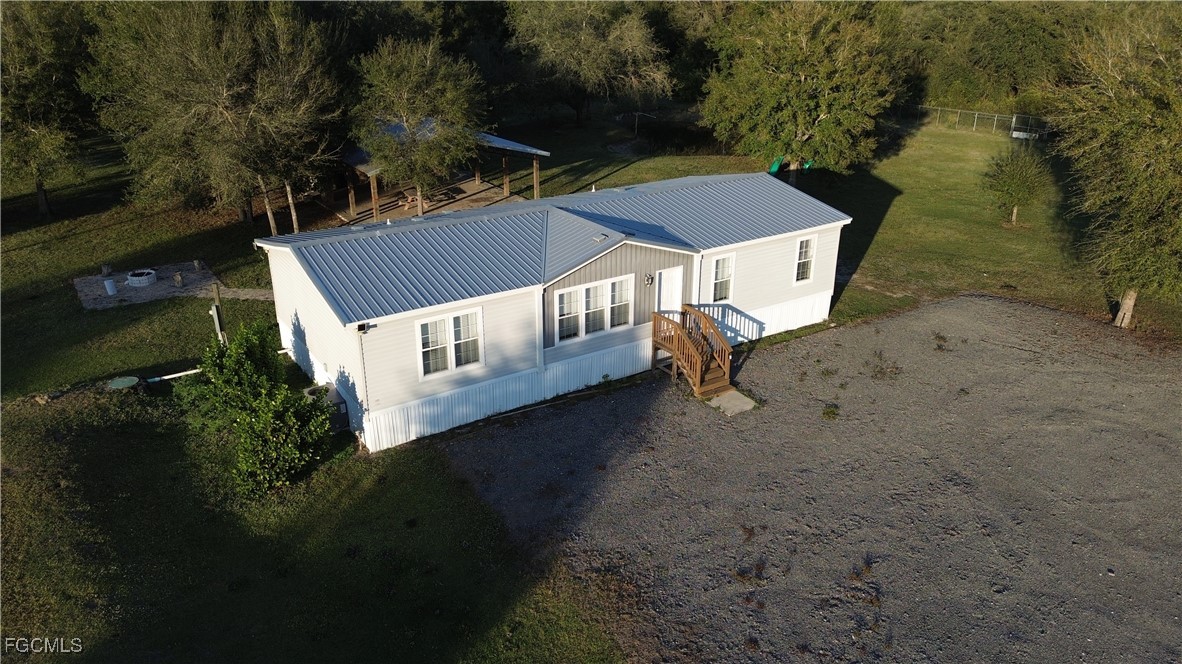 Welcome home to this beautifully maintained oversized property in rural Hendry County Montura Ranch Estates. This property is 3.75 acres completely fenced in with 6ft chain link fence with 3 entry ways/gates including an ornated central iron gate with a beautiful modern horizontal wood-stained look welcoming you in. Property boasts oak trees and a private pond full of Tilapia. Millings have been added to extra wide entryway and compacted for parking. There is a fire pit, a 40x30 Metal Roofed Pole Barn to store your toys or host your outdoor parties with underground wiring. Fruit trees all around: passion fruit, star fruit, guava and orange all included in the property. Property is well groomed and cleared. The Home itself is 1,568 sq ft with 4 bedrooms and 2 bathrooms, extra big master bedroom closet and bathroom. This rural golf-cart and horse-friendly community is 1.5 hr from each coast and has no HOA's. Seller is open to options of selling or renting. There is an additional 1.25 acre adjacent that could be purchased for a total of 5 acres. Call to schedule your showing today! USDA, VA, FHA, and conventional loans welcome.