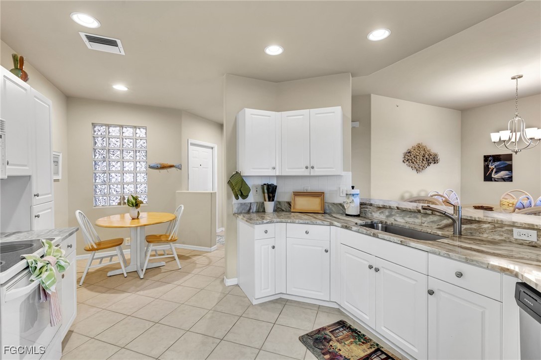 Tile flooring in the entry, kitchen, bathrooms, and hallway,