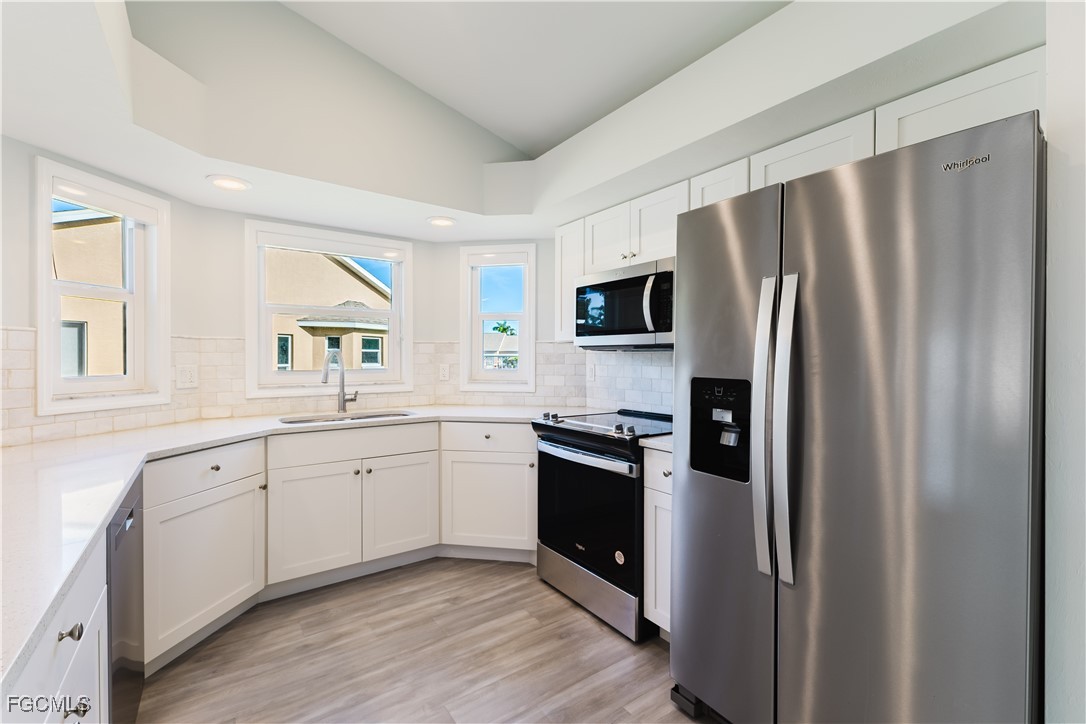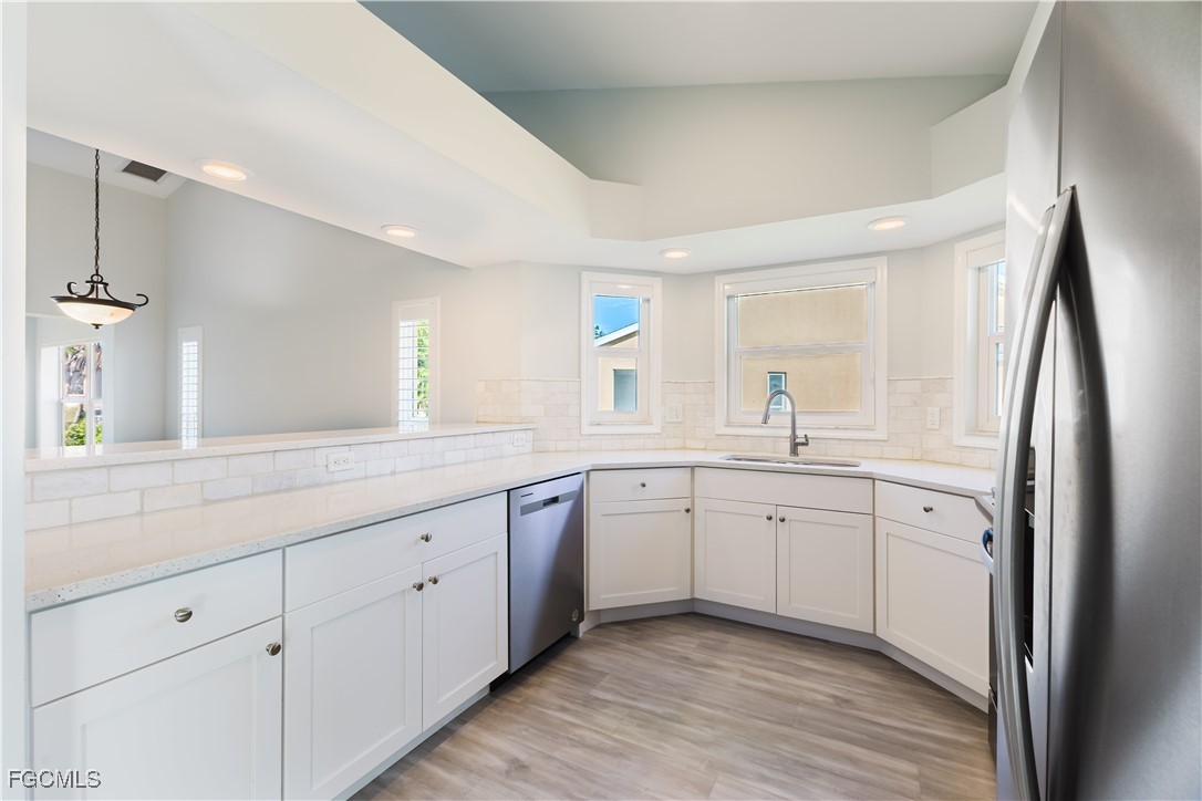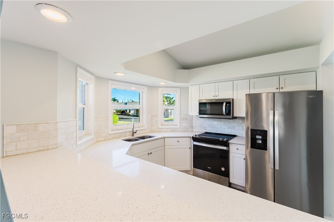Discover this stunning, fully renovated, move-in-ready condo in Sanibel Sunset Villas, where every detail has been thoughtfully updated with brand-new finishes throughout! Soaring vaulted ceilings and an abundance of windows fill the home with natural light, creating a bright and airy atmosphere you’ll love coming home to.