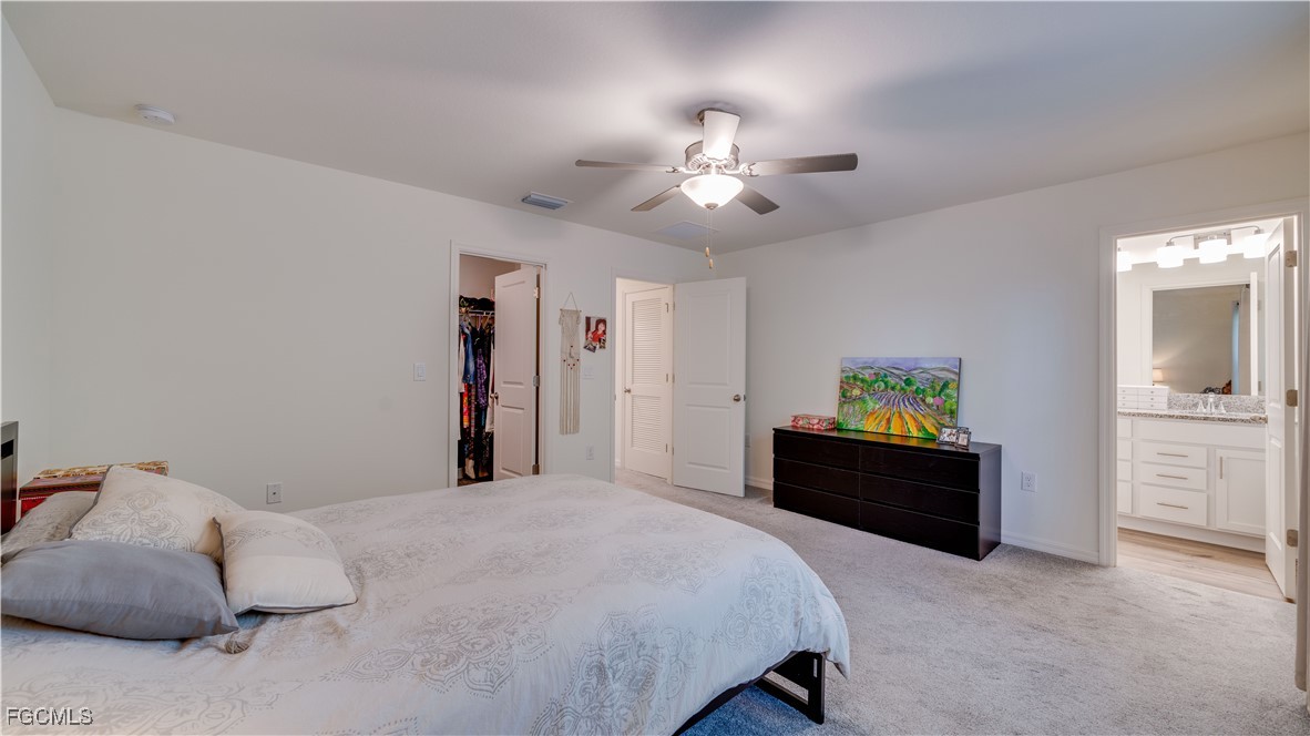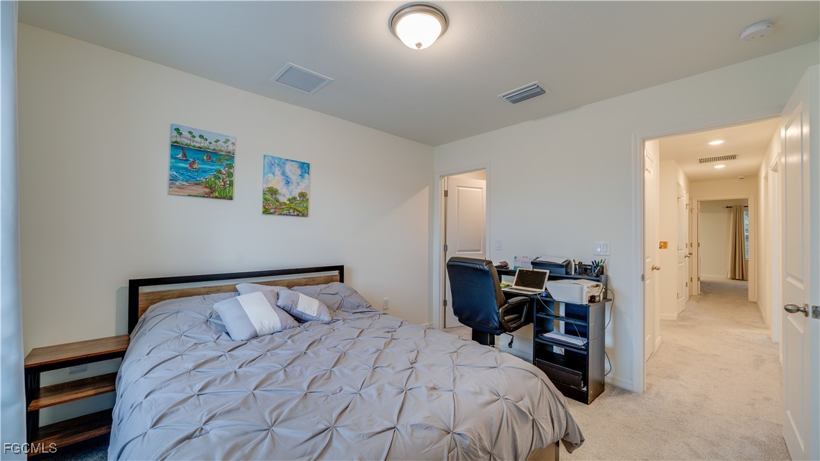 All three bedrooms are located upstairs. The spacious primary suite includes a generous walk-in closet and a private bathroom with dual sinks and a walk-in shower. Two additional bedrooms share a full bath with a tub/shower combination. The upstairs laundry room adds everyday convenience, and a half bath serves the main living area downstairs.