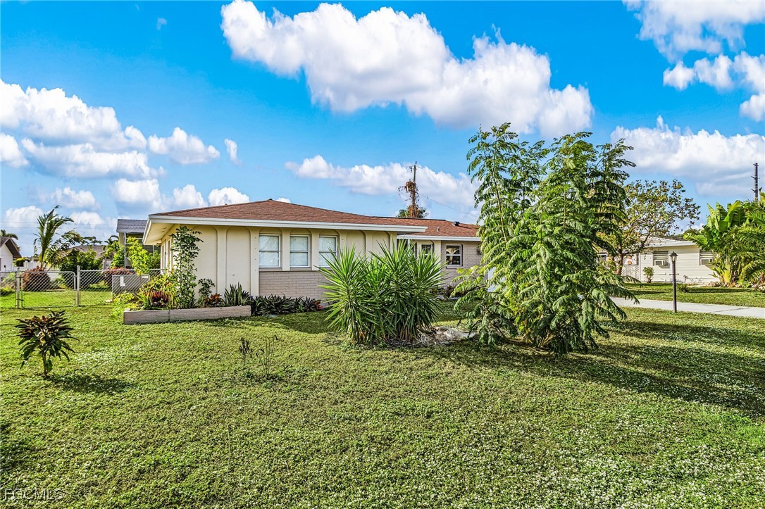 Step into this move-in ready 3-bedroom, 2-bath home with a 1-car garage—packed with upgrades and value! Enjoy stylish vinyl flooring and a beautifully updated kitchen featuring new cabinets, quartz countertops, and brand-new 2024 appliances. The covered, screened lanai offers the perfect spot for entertaining, relaxing, and enjoying all that Florida living has to offer. A fully fenced backyard and a tiled, screened front porch add comfort and convenience. Major improvements include a newer roof (2016), fence (2017), A/C (2019), water heater (2022), and a new electrical panel (2024). Located close to Cape Coral Pkwy and downtown Cape Coral, you’re minutes from dining, shopping, and all the best local amenities. Friendly seller says bring offers!