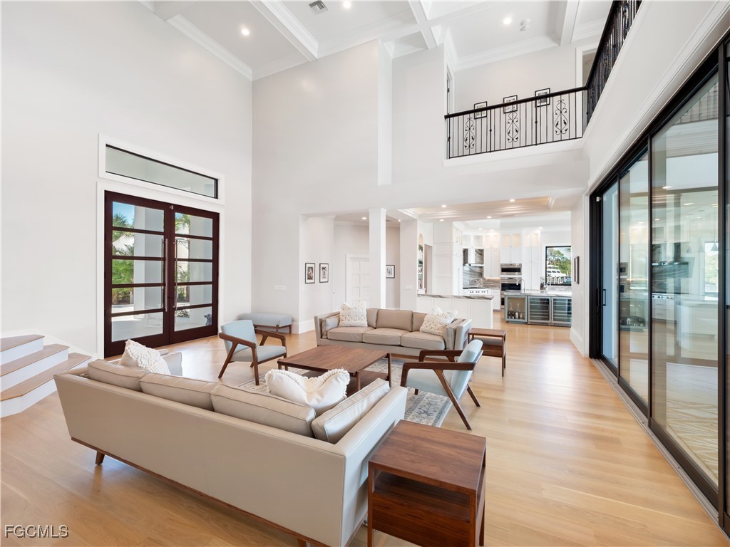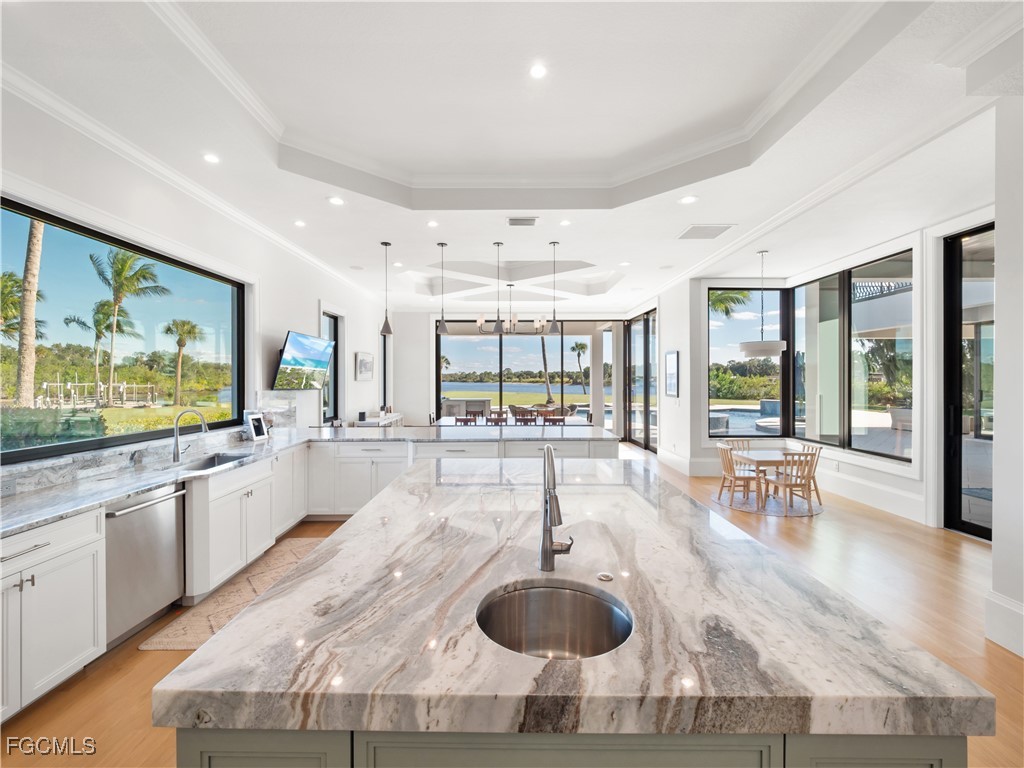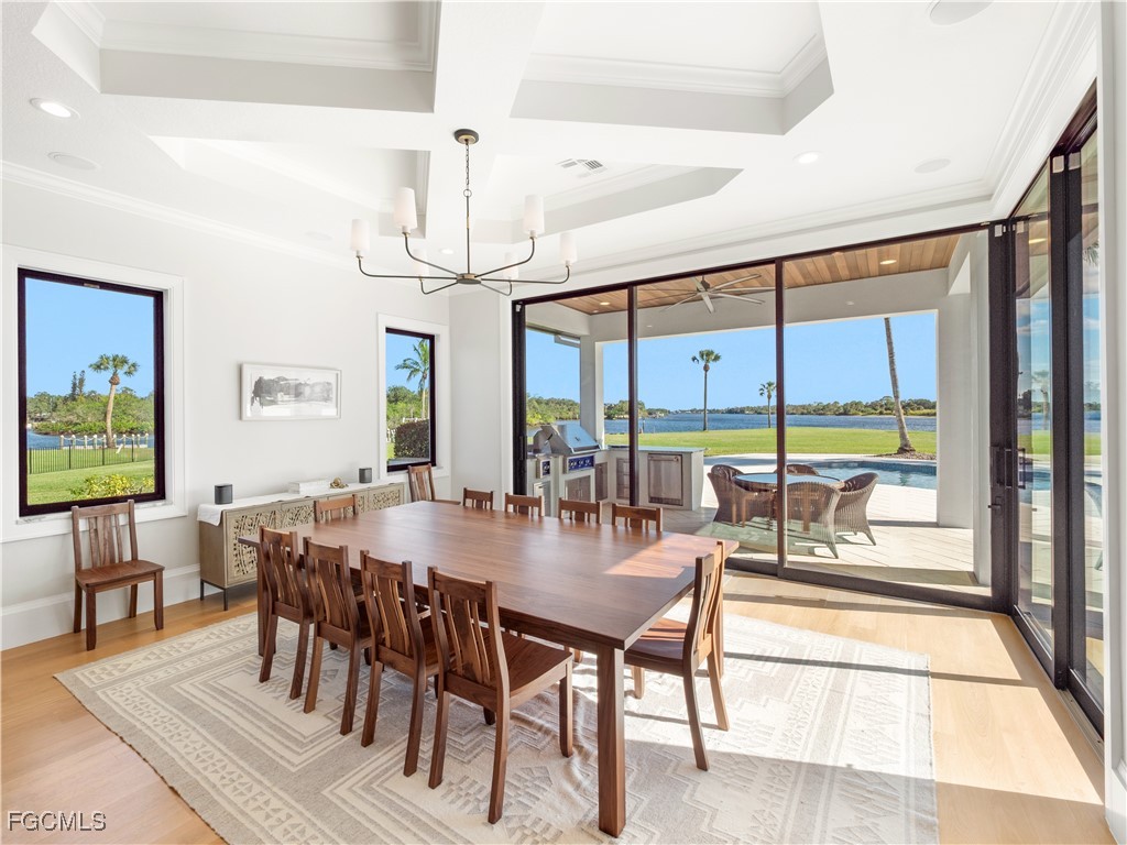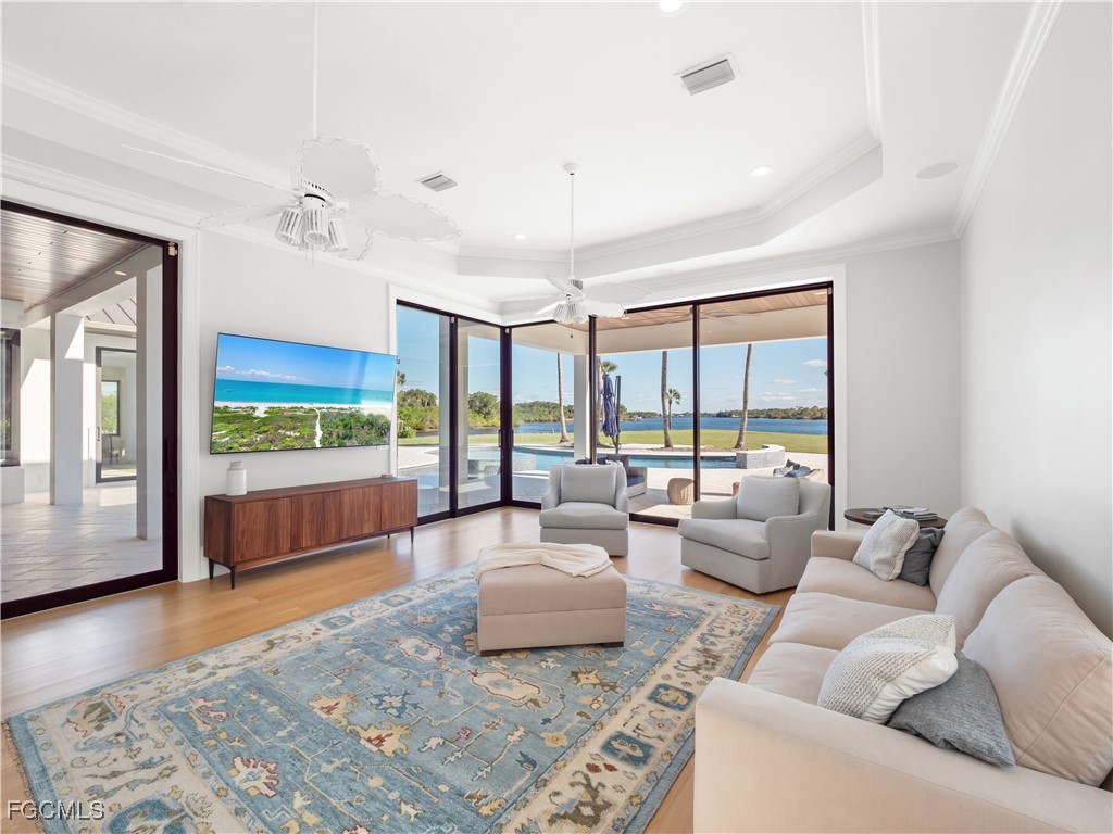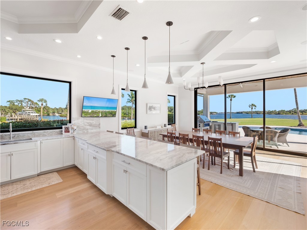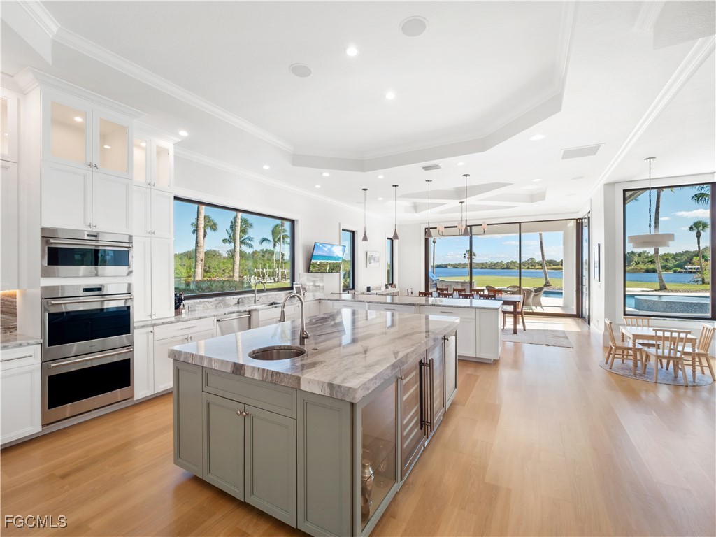 A rare Waterfront estate offering privacy, scale, and true deep-water boating. This property is truly special! As you approach the home, an expansive grand driveway entrance leads to a private estate located at the end of a quiet street. Situated on a premier corner lot just outside the city, this property offers pure peacefulness and a true Old Florida lifestyle rarely found in today’s market. The estate spans approximately 1.5+ deeded acres (2.5+ usable) with an impressive 750+ feet of river frontage, delivering breathtaking 180-degree river views and a sense of seclusion throughout. Mature oak trees, lush landscaping, a newer boat dock with two lifts, and direct Gulf Yacht access complete this exceptional waterfront setting. Outdoor living is centered around a resort-style pool with a center spa and sun shelf, paired with a fully equipped professional outdoor kitchen, ideal for relaxing or entertaining along the river. Recessed exterior lighting surrounds the home, creating a refined evening ambiance. Inside, the home offers over 6,000 square feet of well-designed living space with 6+ bedrooms. A soaring grand entry immediately draws your eye to the water, with expansive river views, abundant natural light, and high ceilings throughout. Natural oak flooring runs throughout the home and is complemented by custom baseboards.The open floor plan flows into the chef’s kitchen featuring a large island, Wolf appliances, Sub-Zero refrigerator/freezer, wine cooler, butler’s pantry, granite countertops, and floor-to-ceiling custom cabinetry. Zero-corner impact sliders seamlessly connect the interior to the outdoor living areas, making this home ideal for entertaining. The primary suite features a spacious custom closet and a stunning master bathroom with a walk-in shower, stand-alone soaking tub, and dual vanities. Additional features include a whole-home reverse osmosis system, flood barrier system for peace of mind, oversized garages large enough to park a large boat, RV and or your car collection, and extra large storage space in a dedicated room above the garage. This waterfront location offers large yacht boating access, east or west. Be on the east coast in hours via the lock system out to the Atlantic Ocean or head to the Keys out the river and to the Gulf waters. A truly special riverfront property offering privacy, quality, and unmatched boating access in Lee County.