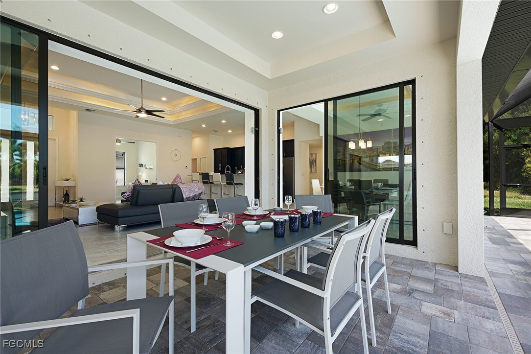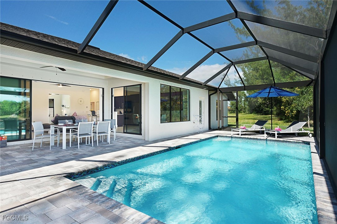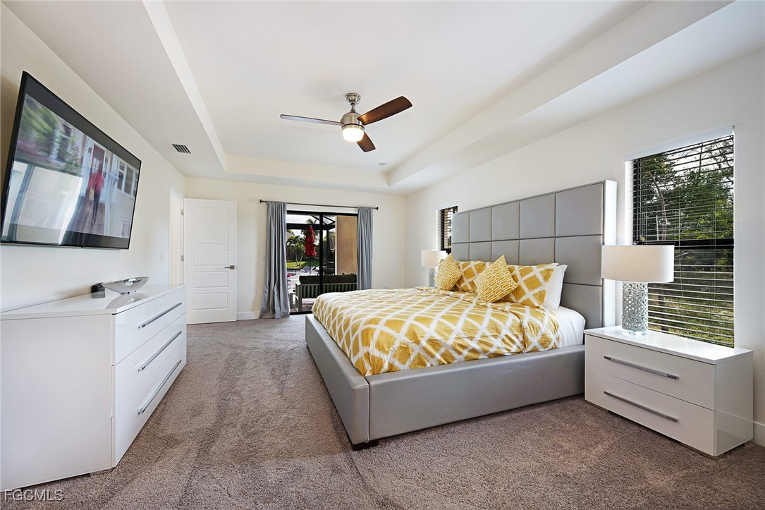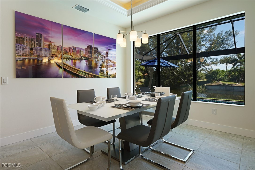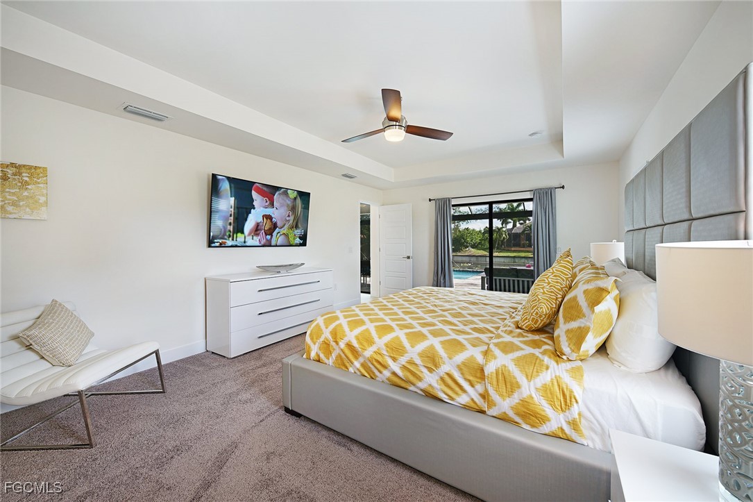 WELCOME TO PARADISE! Once you open the front door you will feel home at this beautiful Florida house. Enjoy each morning with a gorgeous SUNRISE. Great VIEW into intersection canal at the Tahiti Canal. – The house features over 2,100 sqft with 3 spacious Bedrooms, 2 bathrooms plus DEN and a large 3-car garage. You will love the open floor plan with illuminated high tray ceilings. Den could be used as 4th bedroom. – Lanai Doors open to the beautiful pavered pool area and the large screened-in Lanai. There is plenty of room for entertainment at the lanai. Outdoor kitchen is pre-installed. Fresh exterior Paint. There are much more attractive details. – This house is located in a quiet neighborhood with several new constructions. Centrally located to Shopping and Cape Harbour. – NO FLOODING at any Hurricane! – This property could be a great Investment Opportunity as Vacation Rental, since it is already in a Rental Program. But it could also be your new full-time Residence or your Seasonal Retreat. – So, don’t miss this chance to own YOUR PIECE OF PARADISE!!!
