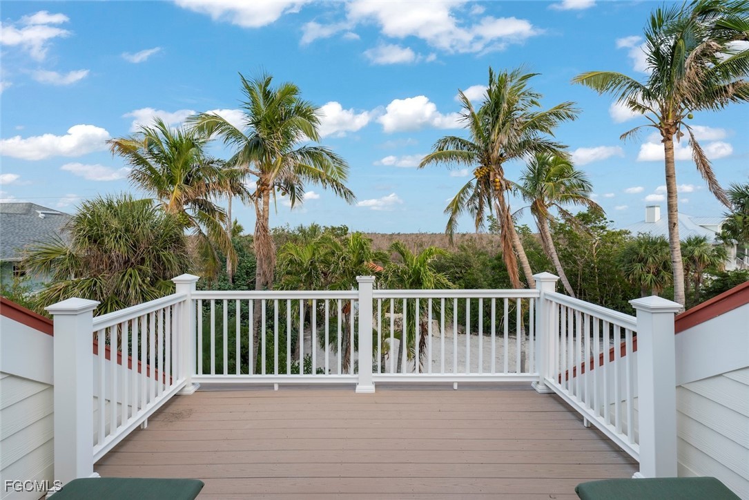 Welcome to your Captiva Island oasis! This Gorgeous home is the perfect island get-a-way- situated on Roosevelt channel offering direct Gulf access from your private dock and a rare boathouse with 20,000lb. boat lift- the natural shoreline adds privacy and allows for a great kayak/SUP launch area. Just a short stroll to one of the best beaches and shelling locations! This 3 bedroom, 3 bath, pool home has Travertine floors throughout main living level and hardwood floors in the private, 2nd floor primary suite. The primary suite has vaulted/beamed ceiling & a private sunning deck w/water views. Primary bathroom has double sinks and custom glass tile. The kitchen has been completely renovated and cleverly designed to maximize storage and flow in the main living area, adding a custom island and space for a 60" range and hood, custom built-ins added in all bedroom closets, this home is light, bright and everything you want in an island home. After a day on the water, take a swim in the sparkling concrete elevated pool surrounded by lush tropical vegetation offering a feeling of seclusion and privacy. Newer Septic system, 2 a/c's 2022, washer & dryer 2025. Enjoy Island living, boating, fishing, shelling, sunning and stunning sunsets on Captiva Island. Property sold furnished, main living area and bedroom images are virtually staged adding accessories and artwork. Furniture is in place. 60" Range and hood in kitchen is virtually staged, propane tank installed and piped ready for range to be installed.