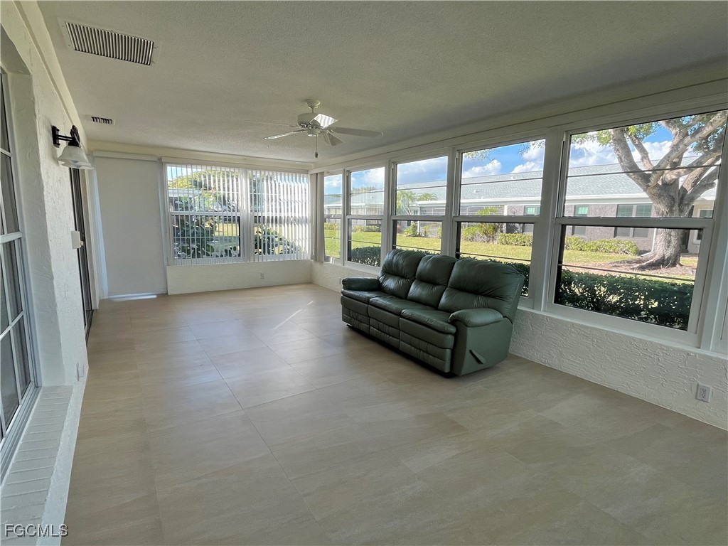This spacious 3 bedroom unit features a gorgeous updated kitchen, bright and cheery bedrooms and baths, plus an air conditioned lanai with impact windows to provide additional year round living space! This condo has great storage closets and cabinetry within, and in the garage as well. The garage even has an electronic roll down screen which converts the garage to giant screened area! Great for gatherings if the weather is rainy! The pull down hatch to the attic stairs is lso vented for good air circulation. The association replaced every roof in the community in 2025 and there is no remaining assessment.