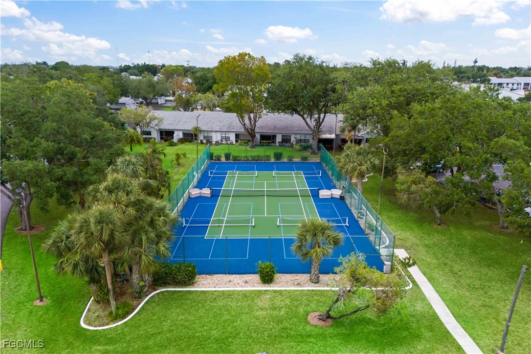 This charming 2-bedroom plus den, 2-bath villa offers the perfect blend of comfort and convenience in the highly desirable Pine Ridge, a well-maintained, pet-friendly 55+ gated community. Whether you're seeking a seasonal getaway or a year-round home, this villa provides a peaceful retreat in a beautiful park-like setting. As you approach the home, you'll be welcomed by a spacious front courtyard, ideal for outdoor living or gardening. At the rear, the screened lanai offers a private and tranquil escape with serene, wooded views, ensuring total privacy. Inside, the villa features high ceilings and large sliding glass doors that flood the home with natural light. The updated eat-in kitchen combines modern style with functionality, while the adjoining formal living and dining areas provide ample space for entertaining. The bathrooms have been updated and the villa has been painted. For added convenience, the villa includes NEW washer / dryer and boasts one-level living with no stairs. The detached one-car garage offers extra storage, and there’s plenty of guest parking nearby. Pine Ridge offers an exceptional array of amenities, including a clubhouse overlooking a scenic 20+ acre lake with two lighted fountains. Residents enjoy a heated pool and spa, tennis, pickleball, bocce ball, and shuffleboard courts, along with bike racks, BBQ areas, and a dog park. A car washing station is also available for convenience. The HOA fees cover essential services such as water, sewer, cable, internet, and lawn care, allowing you to enjoy a low-maintenance lifestyle. On-site management and maintenance ensure that the community remains in pristine condition. Located with easy access to I-75, shopping, dining, and all that Southwest Florida has to offer, this villa is ideally positioned for both relaxation and convenience. Whether you're looking for a seasonal escape or a full-time home, this villa represents outstanding value in a vibrant and well-established community. Don’t miss the chance to explore this stunning villa and experience everything Pine Ridge has to offer. View the virtual tour for more photos of the home and community—this is one opportunity you don’t want to miss!